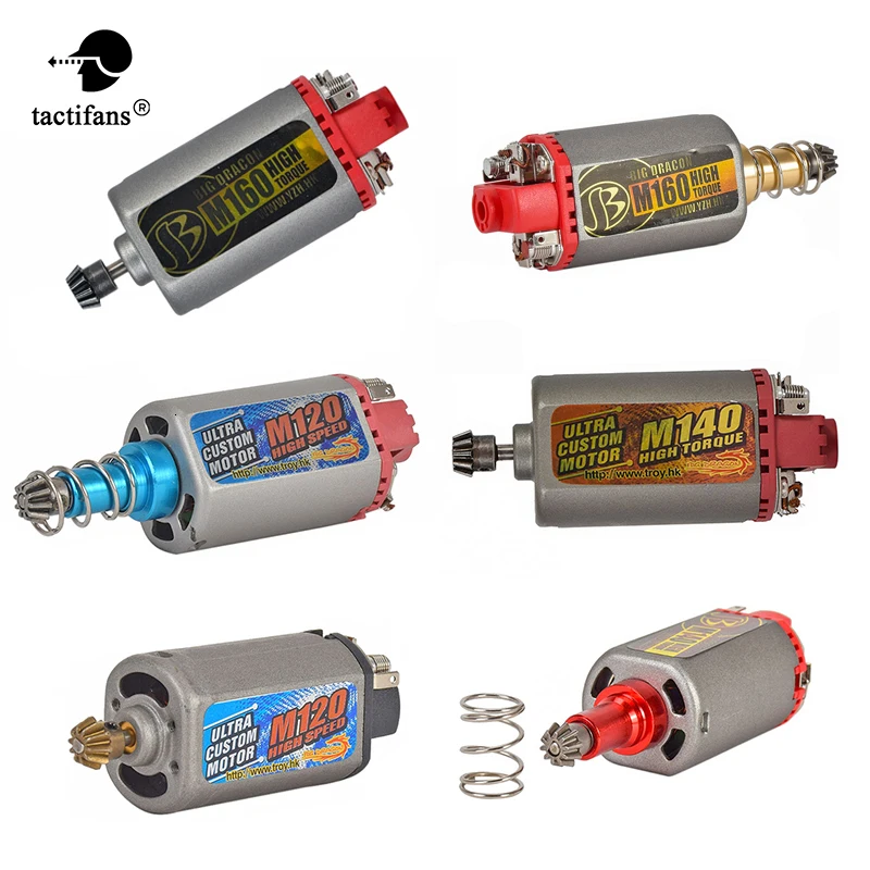 TACTIFANS Big Dragon M120/140/MA160 Motor de alto par/alta velocidad AEG/EBB Motor de eje largo/corto para Airsoft M4/M16 MP5 M16 G3 P90 AK