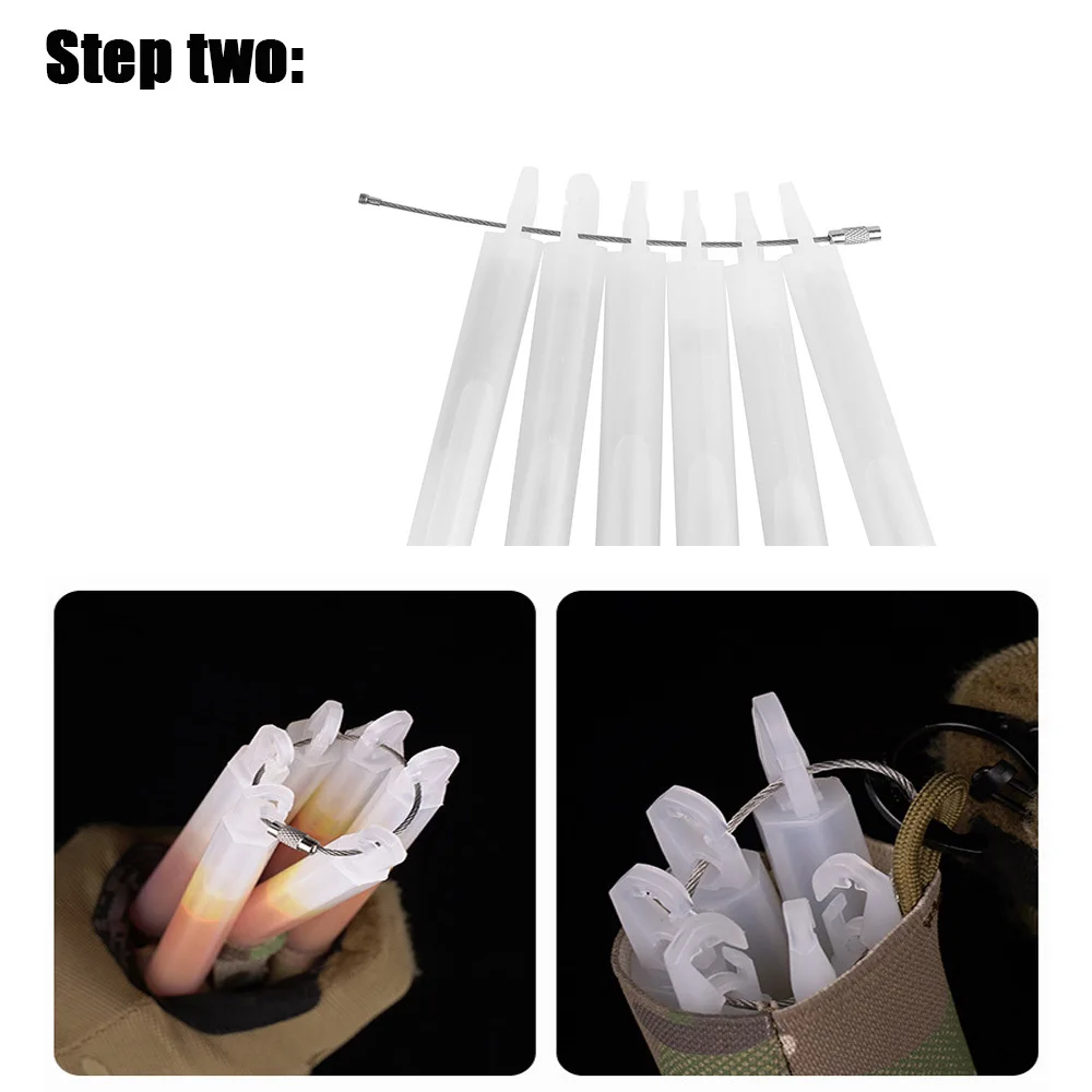 ④ Esta bolsa es ideal para actividades al aire libre como deportes, camping, caza y pesca. Se puede montar en mochilas, chalecos, cinturones y otras configuraciones de equipo, lo que le proporciona un acceso conveniente para mantener sus luces químicas