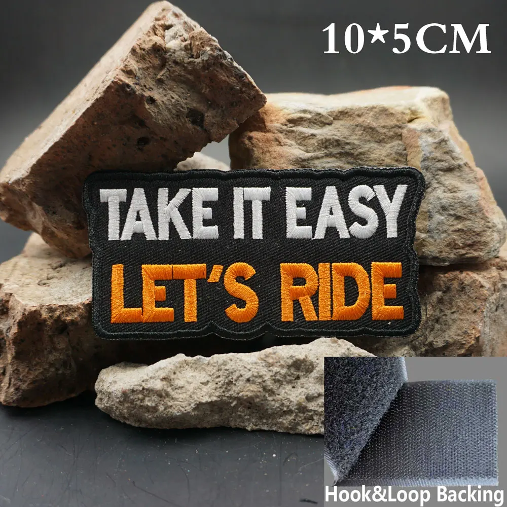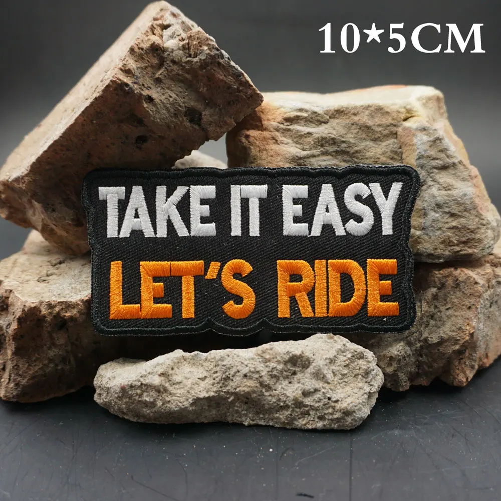 TAKE IT EASY LET'S RIDE parches bordados apliques etiqueta de costura banda de motorista punk insignia de ropa de Rock con respaldo de gancho o coser