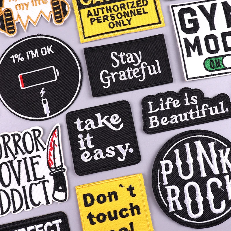 Parches fáciles para llevar, parche bordado con eslogan de letras, parches para planchar DIY para ropa, chaqueta, apliques de costura, parches de letras de dibujos animados