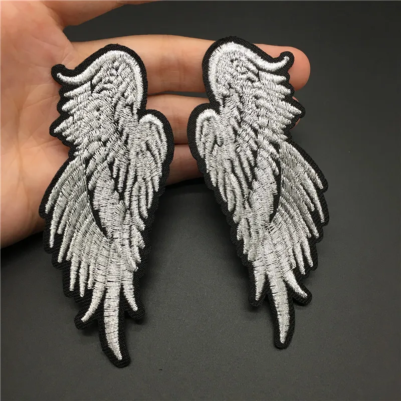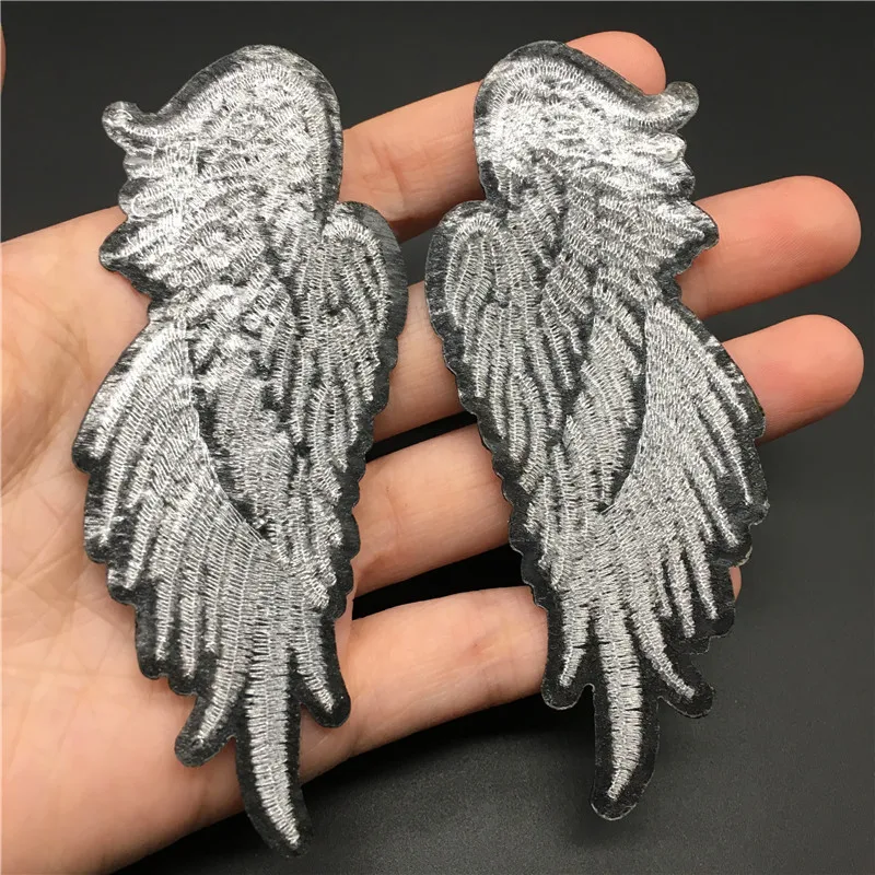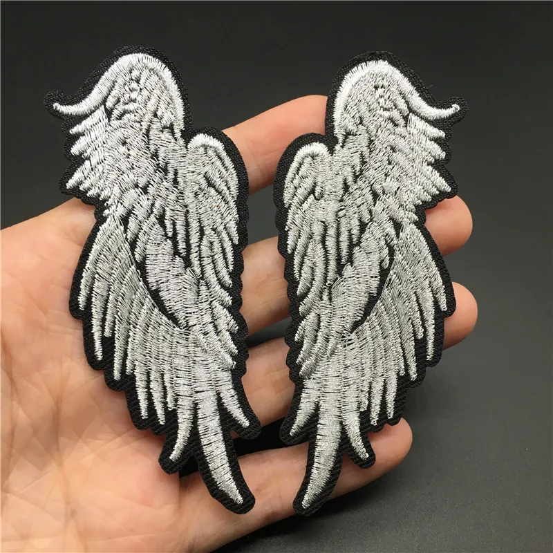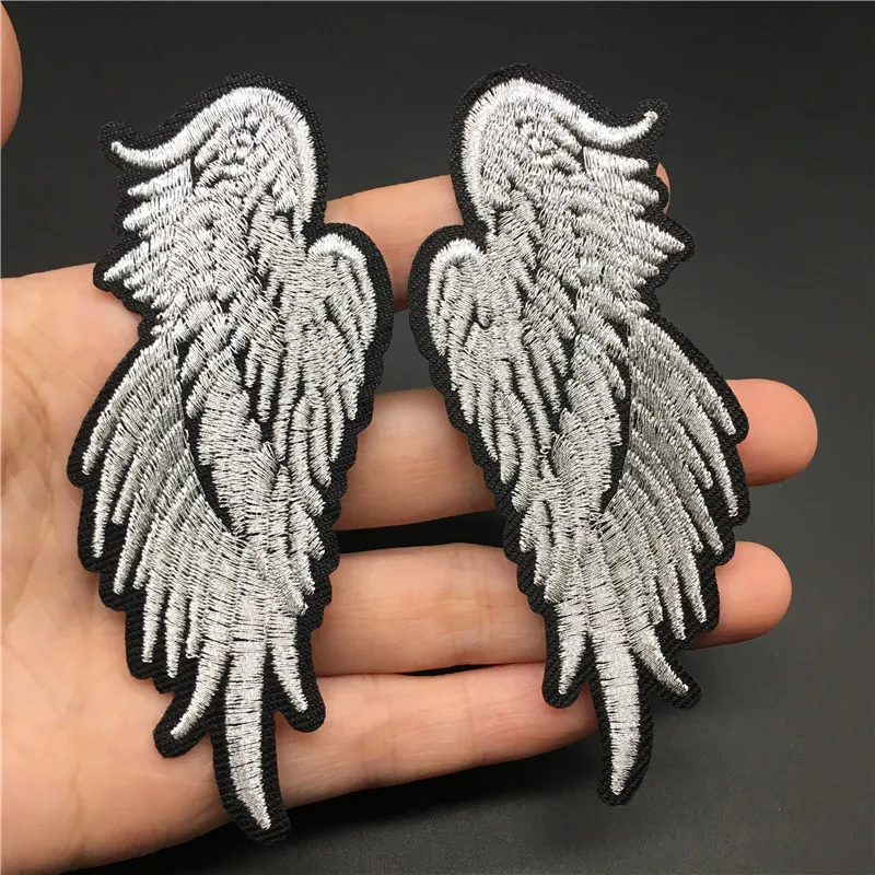 Tamaño de alas de Ángel: 3,8x9,4 cm, parche para planchar para ropa, pegatina de chaqueta a rayas bordadas, insignia DIY, apliques de ropa para coser, 2 uds.