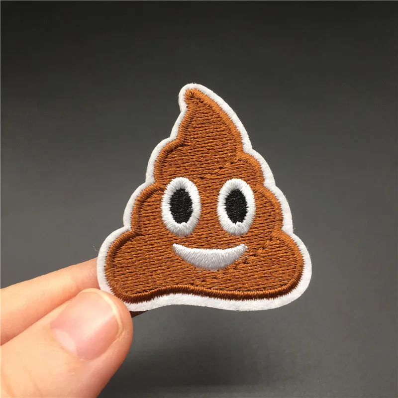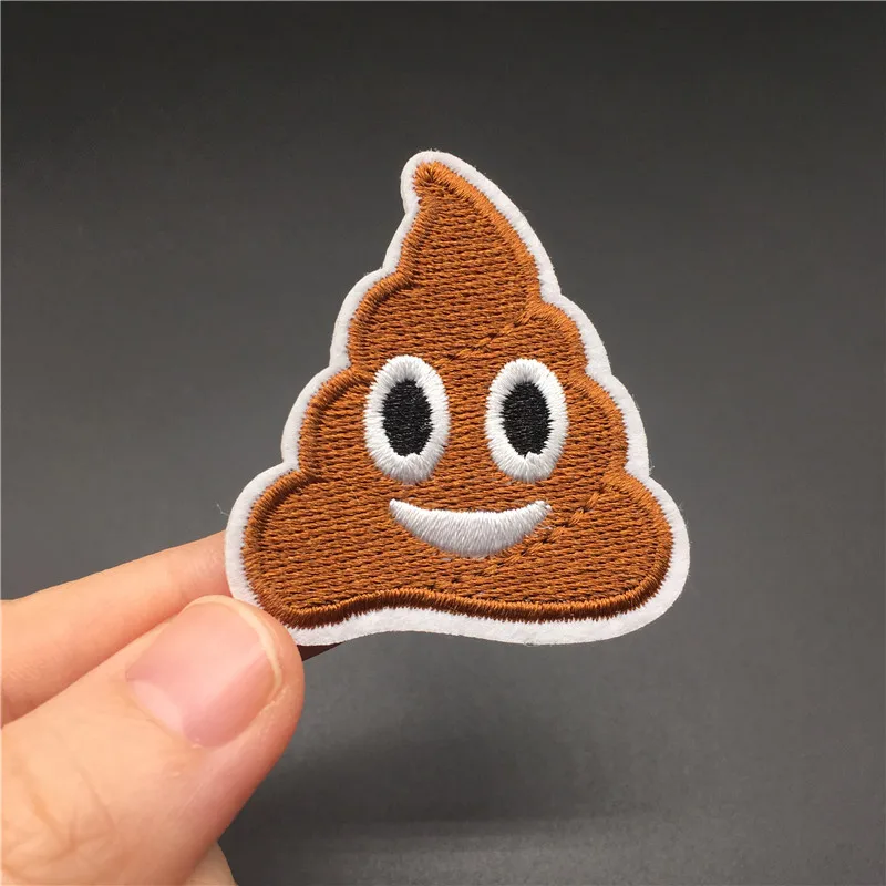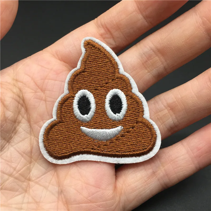 Tamaño de caca sonriente: 4,3x4,4 cm, insignias de tela DIY, parches decorativos bonitos, planchado para coser en apliques bordados para chaqueta de ropa