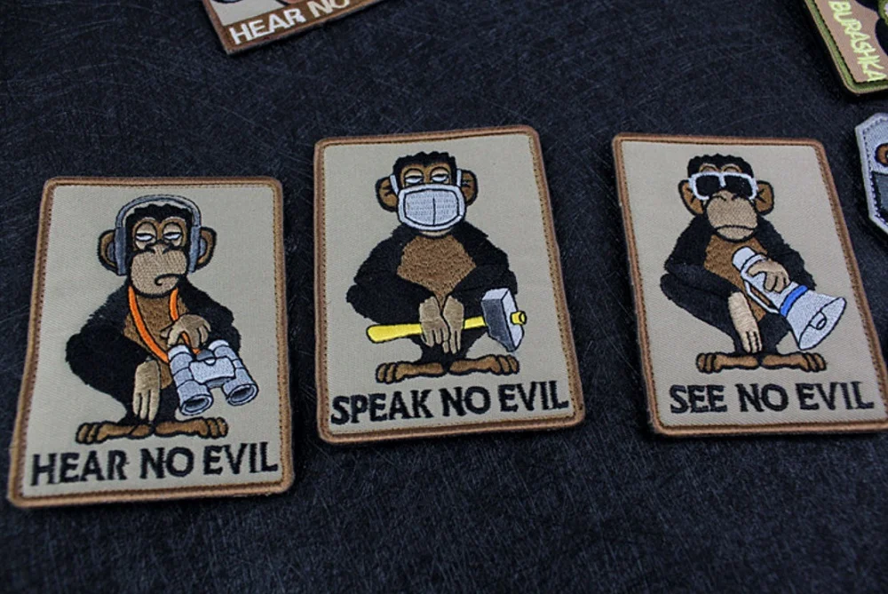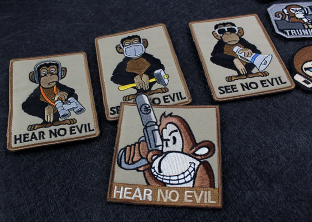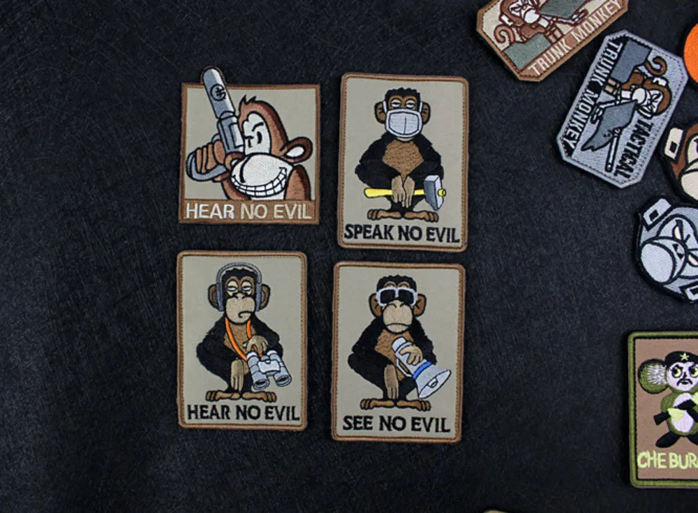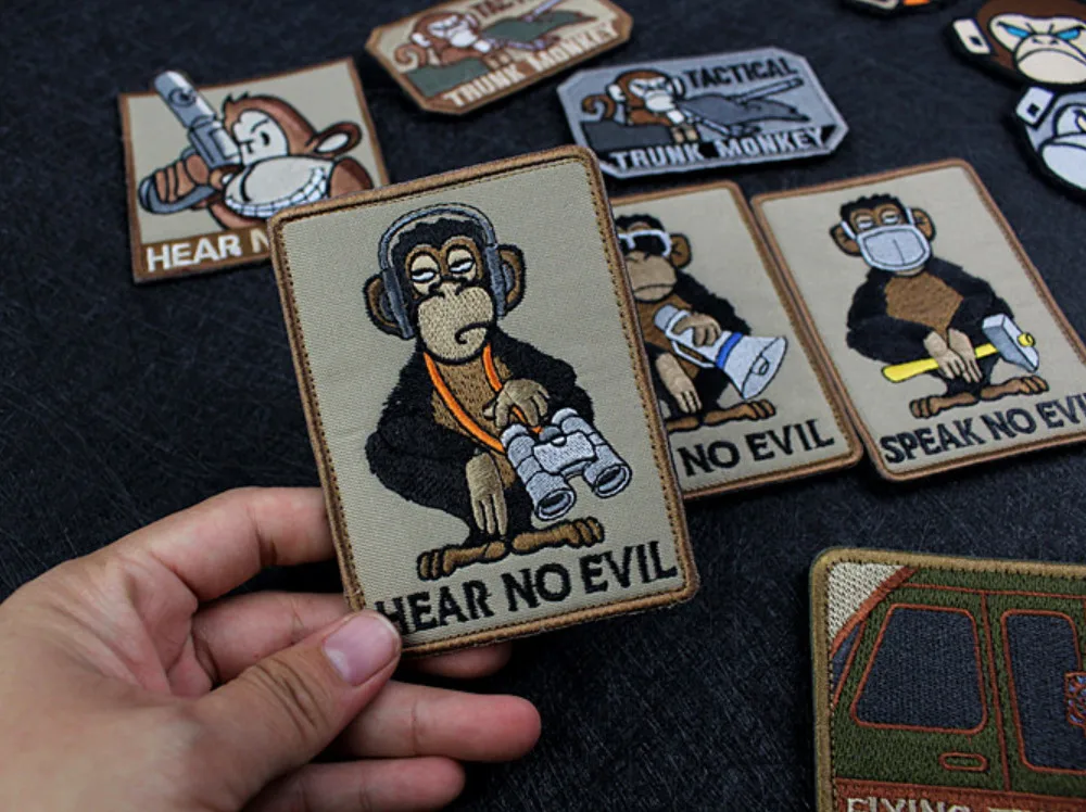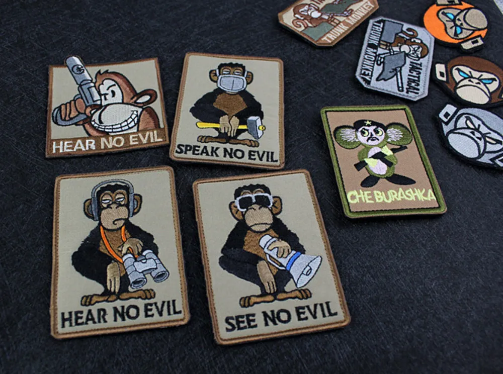 Tanks Che Burashka Hear No EVIL Flying Trunk parche bordado de mono táctico No mirar escuchar hablar insignia de Animal de tres sabios