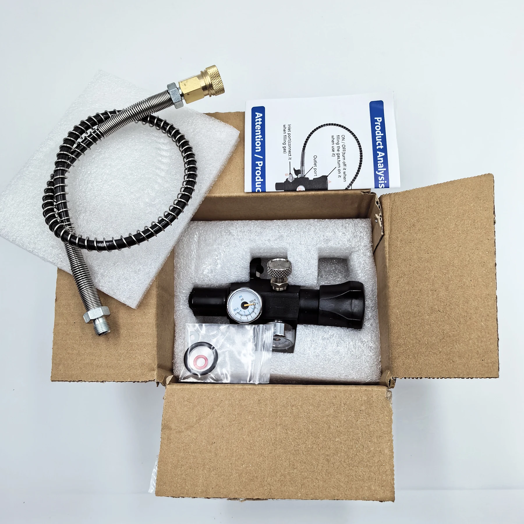 Tanque de aire comprimido HPA M18x1.5 o 5/8 "-18UNF 4500Psi/300Bar Válvula de carga Estación de llenado Manguera 20 pulgadas (50cm) con manómetro