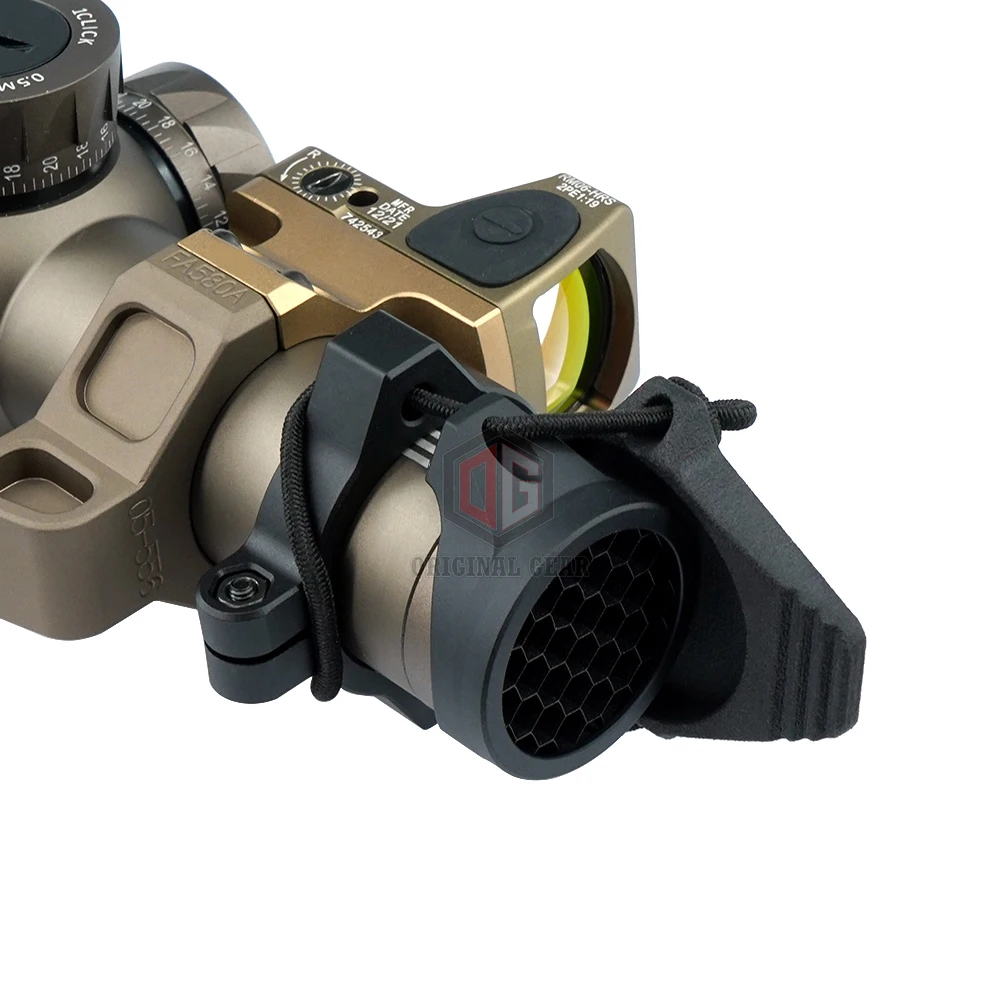 Combinando la tecnología de Nuestras Tapas de alcance y tapas hexagonales, El ScopeCap Pro cuenta con una celosía hexagonal en la lente frontal cuando la cubierta está volteada hacia arriba, que le permite ver a través de la óptica con una obstrucción mínima al tiempo que elimina los reflejos de rango descendente.