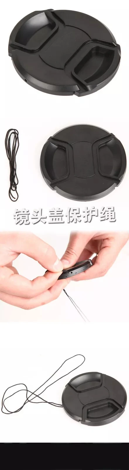 Tapa Protectora de lente de 49/52/58/62/67/72/77/82mm, tapa de filtro de pinza media con cuerda de correa antipérdida