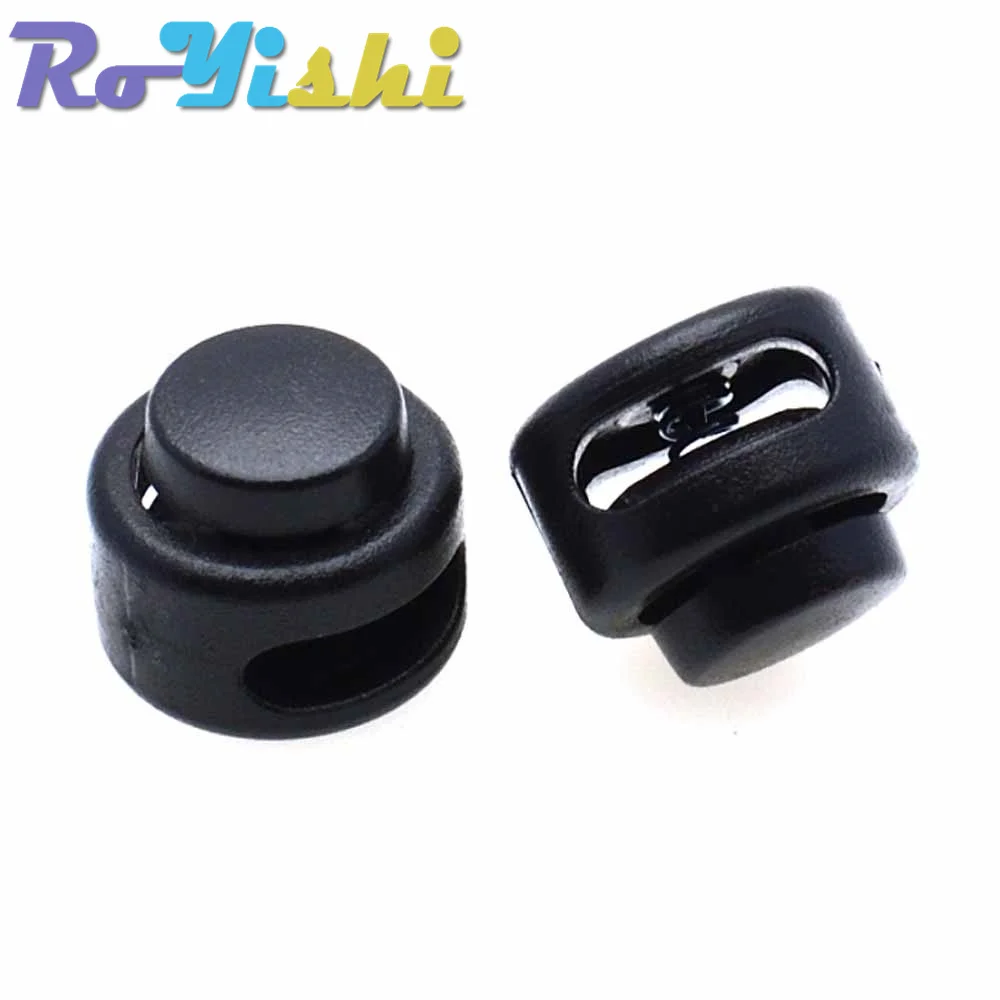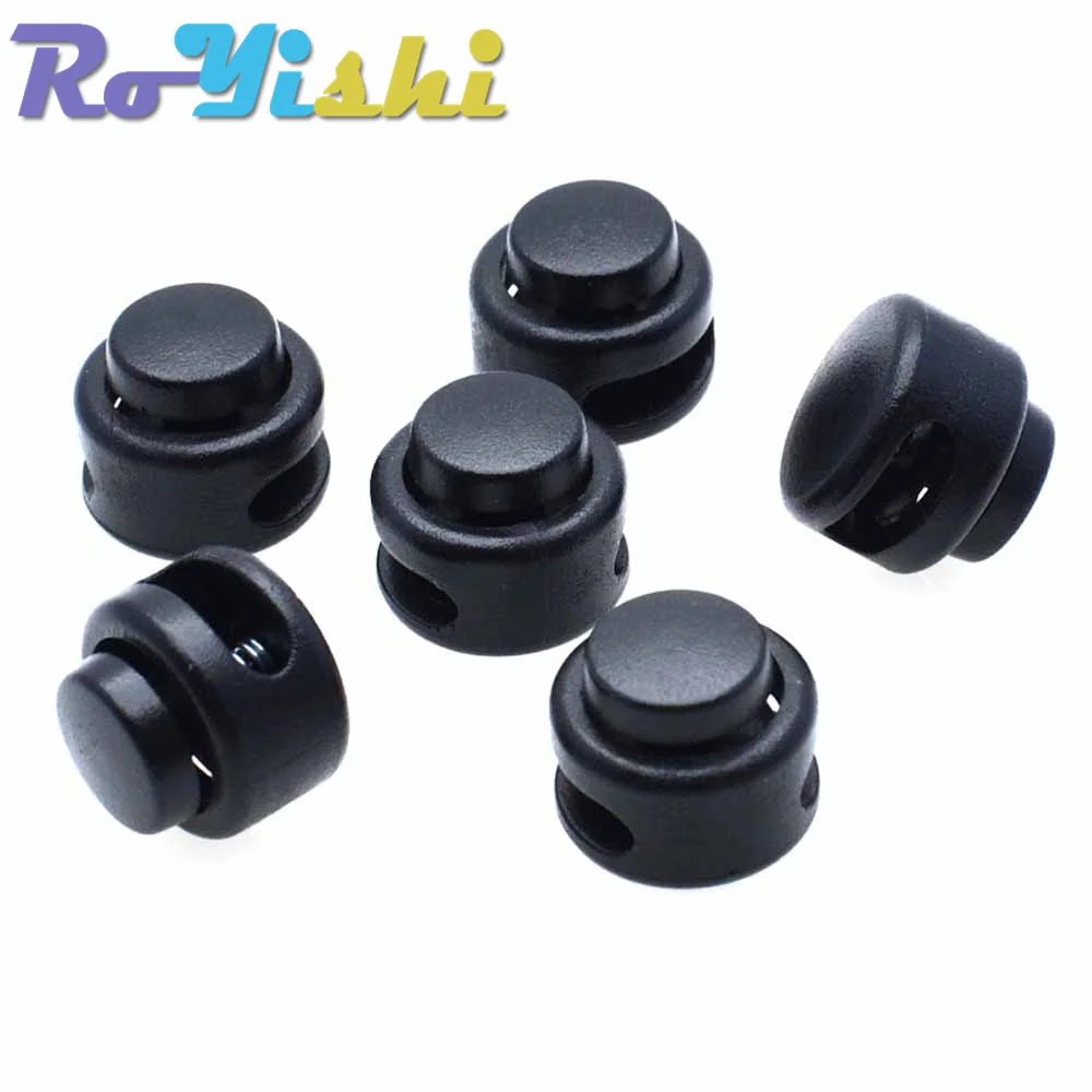 Tapón de palanca de bloqueo de cable de plástico negro para Paracord, tamaño 11mm x 12mm, 10 unids/lote por paquete