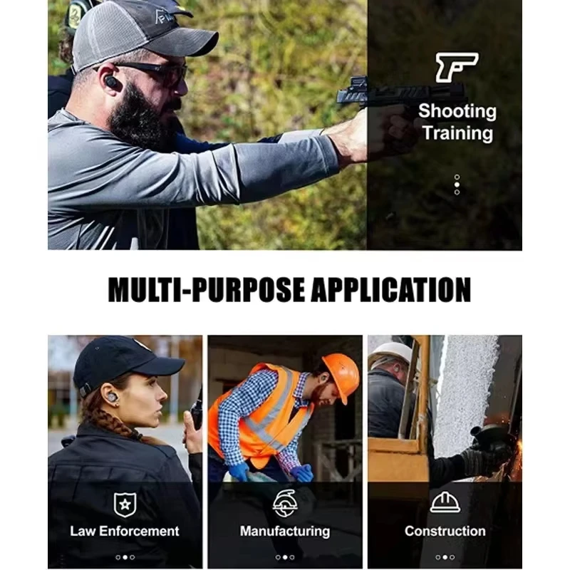 El tapón auditivo electrónico M20 es un producto de protección auditiva excelente y más conveniente.Adopta protección auditiva electrónica interna, que puede ayudar a reducir el ruido continuo y el ruido impulsivo, al tiempo que suprime los ruidos peligrosos superiores a 82 dB y mejora la percepción y la comunicación en entornos ruidosos.Hay dos modos de interior y exterior para ajustar el sonido ambiental.Es adecuado para su uso en entornos con mucho ruido como entrenamiento de tiro, aplicación de la ley, fabricación y construcción, lo que hace que el trabajo sea cómodo y eficiente.La duración de la batería puede ser de hasta 8 horas y hay un recordatorio de batería baja.El estuche de carga portátil no necesita reemplazar la batería, lo cual es conveniente para cargar.En comparación con los auriculares tradicionales con cancelación de ruido, que son más pequeños y livianos, los tapones para los oídos electrónicos combinan compatibilidad, portabilidad y comodidad.Viene con un cable de retención de silicona para evitar pérdidas, y accesorios como fundas para auriculares y almohadillas de diferentes tamaños son convenientes para usuarios con diferentes tamaños de oreja.