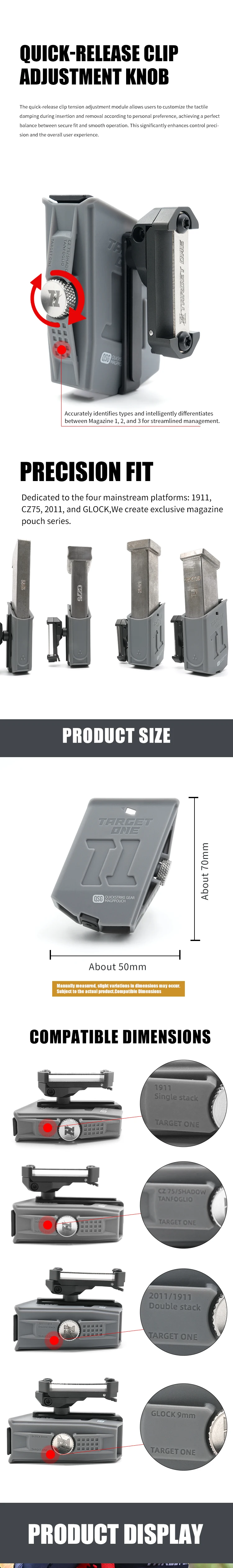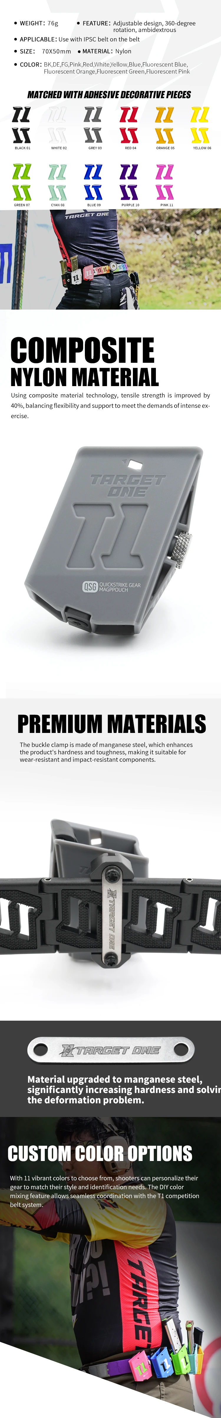 Target One T1 Mag Rack Bolsa de extracción rápida para competición de disparos IPSC para 1911/2011/GLK TO-0003