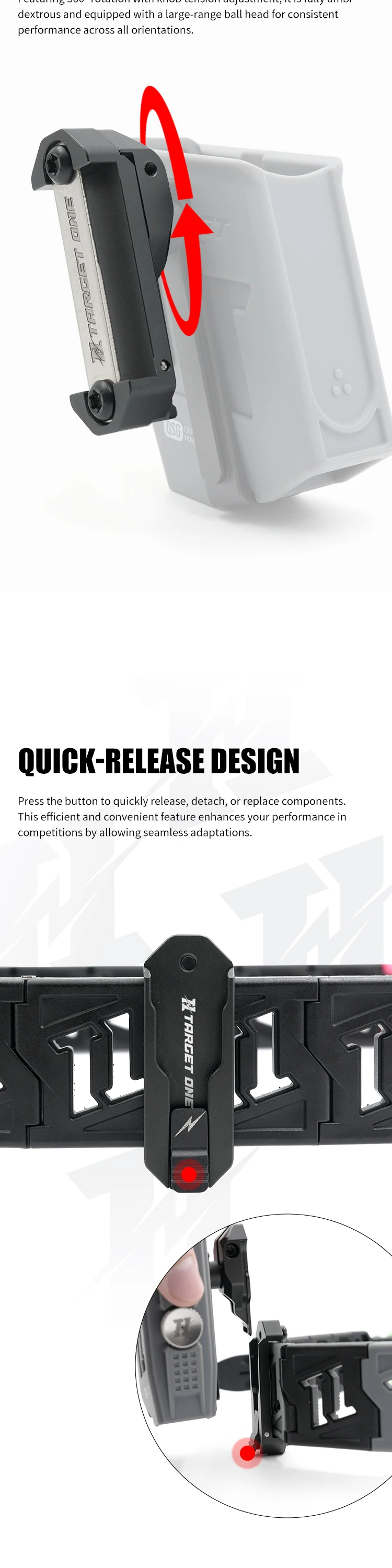 CARACTERÍSTICA: Diseño ajustable, rotación de 360 grados, ambidiestro