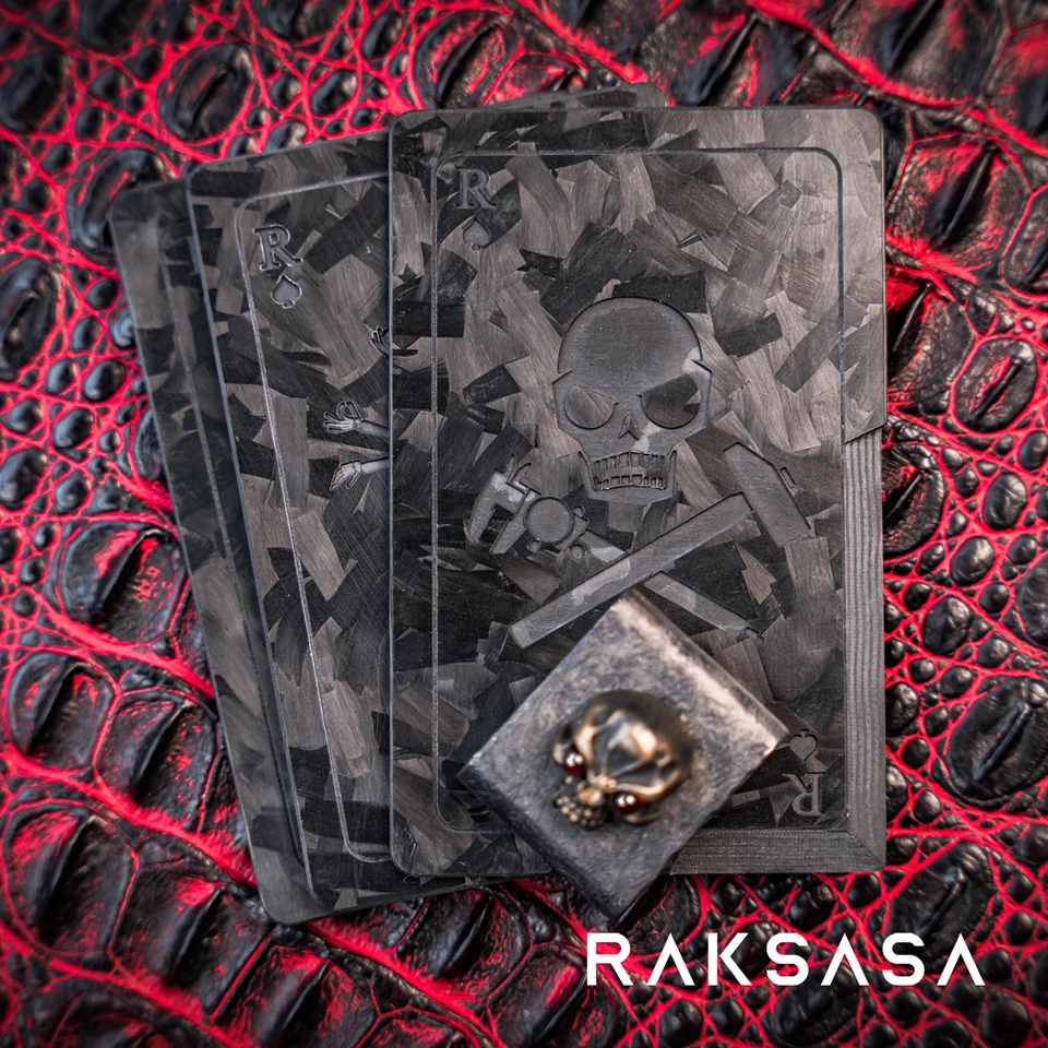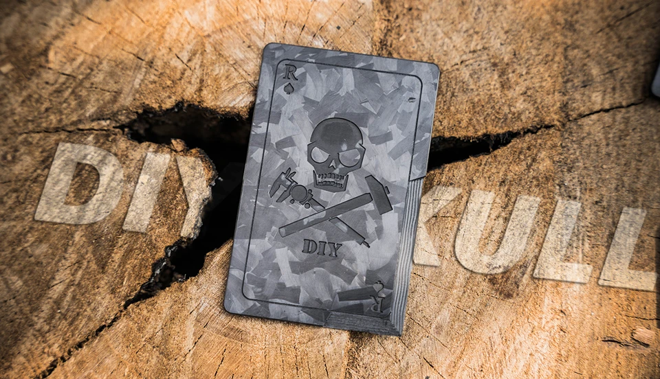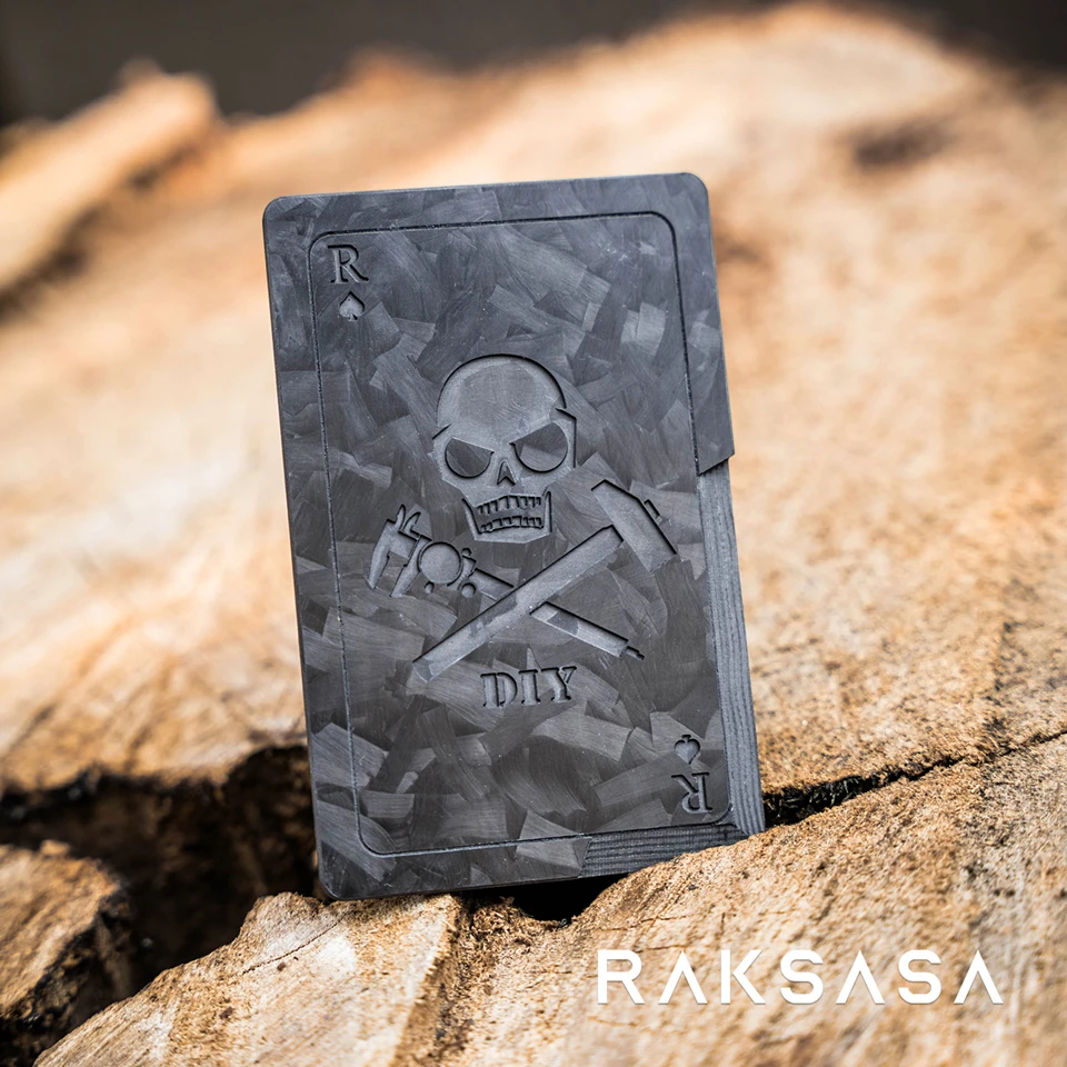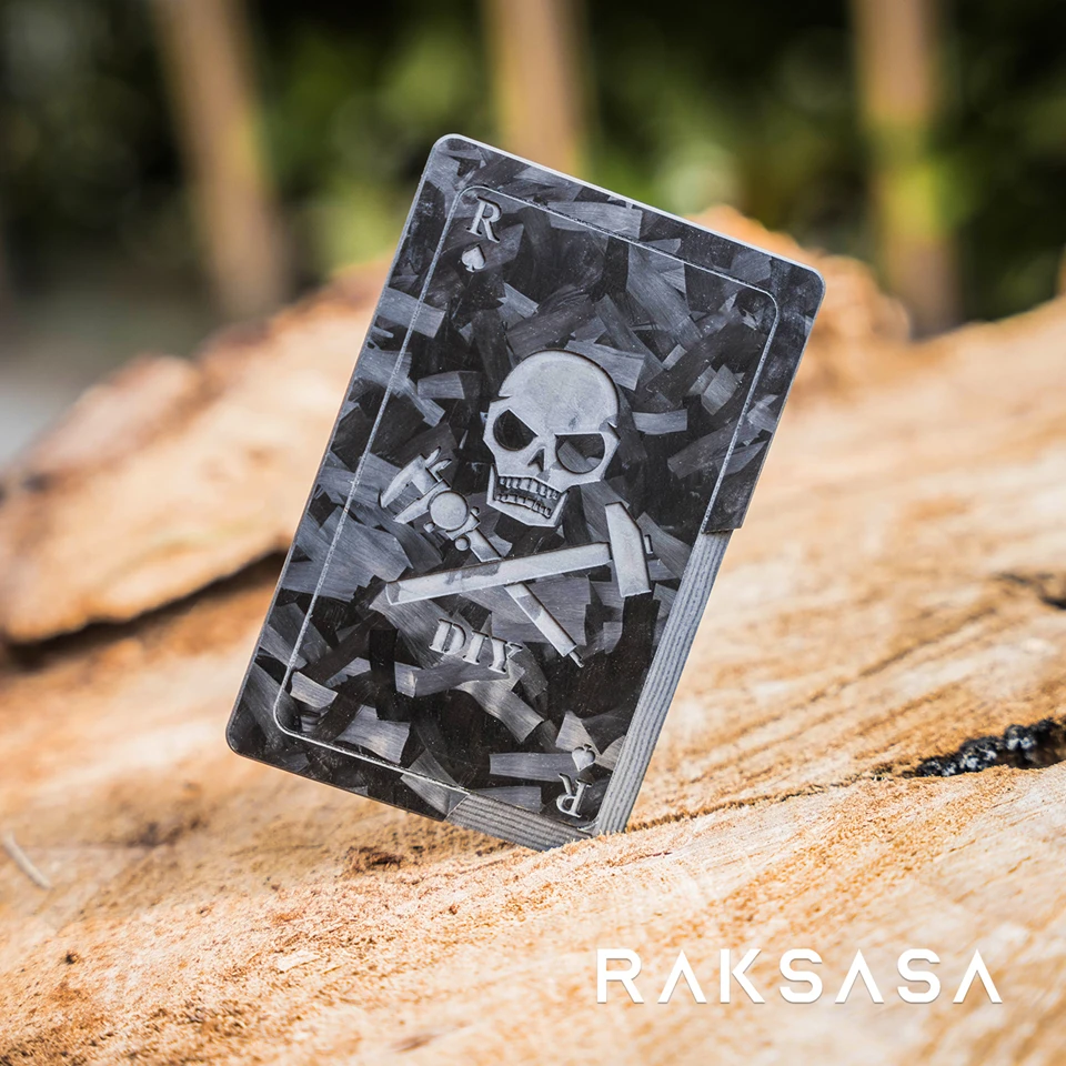 Tarjeta de cuchillo negro de carbono forjado, parche de fibra de carbono, martillo táctico EDC, calibradores Vernier R of Spades Poker con gancho