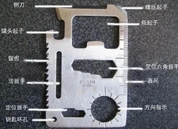 Tarjeta de herramientas de metal portátil multifuncional para exteriores