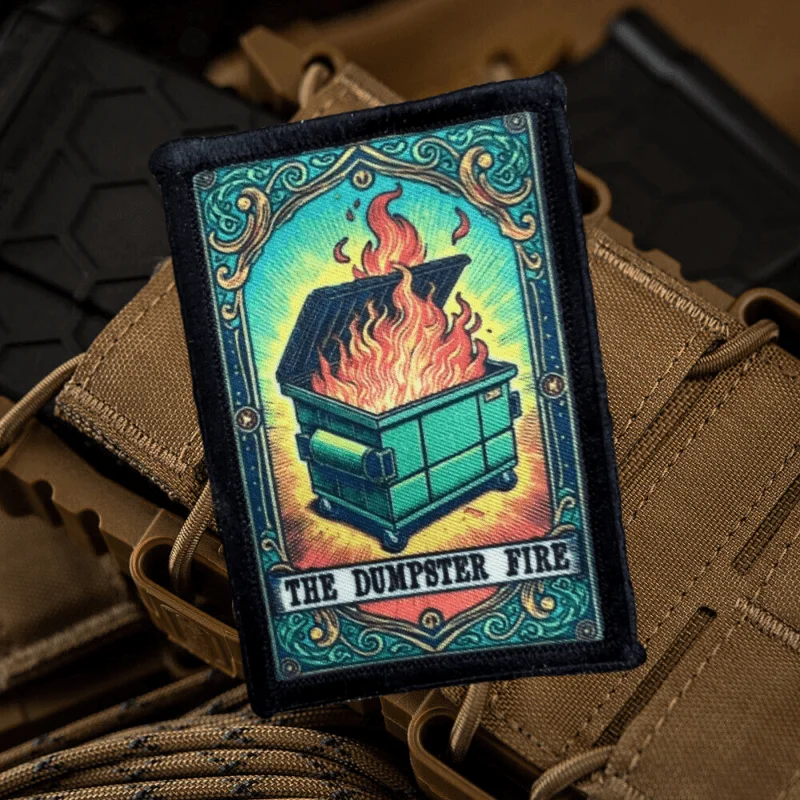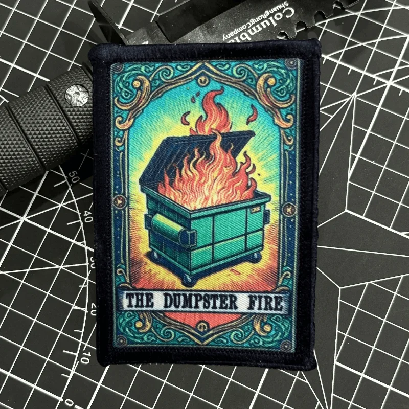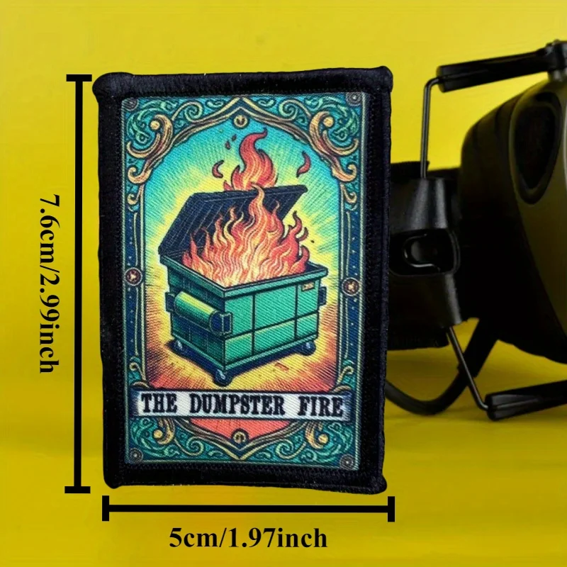 Tarjeta de Tarot de fuego Dumpster, emblema de gancho y bucle con estampado, parche táctico de moral, insignia militar, brazalete de combate, pegatinas para mochila