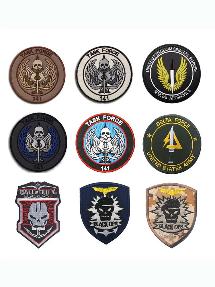 Task Force 141, parches de apliques bordados con emblema OPS negro con gancho y bucle, pegatinas de mochila táctica militar, insignia de brazalete