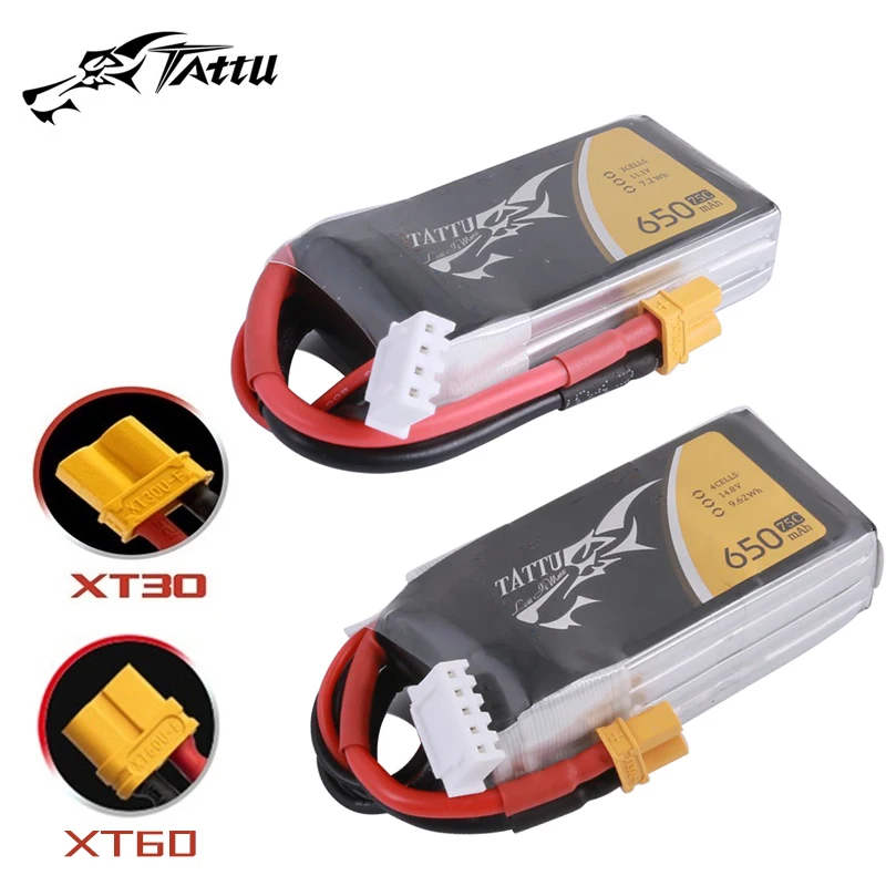 TATTU-batería LiPo de 11,1/14,8 V, 650mAh, 75C, para helicóptero RC, Quadcopter, FPV, piezas de Dron de carreras con enchufe XT30/XT60, 3S/4S