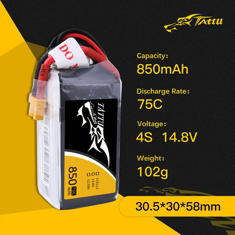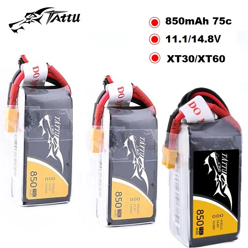 TATTU-batería LiPo de 11,1/14,8 V, 850mAh, 75C, para helicóptero RC, cuadricóptero, FPV, piezas de Dron de carreras, 3/piezas, batería recargable
