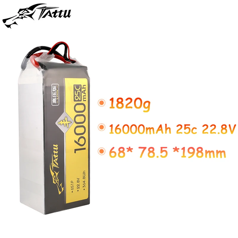 TATTU-batería LiPo de 22,8 V, 16000mAh, 25C con enchufe XT90S para helicóptero RC, Quadcopter, FPV, piezas de Dron de carreras, batería 6S