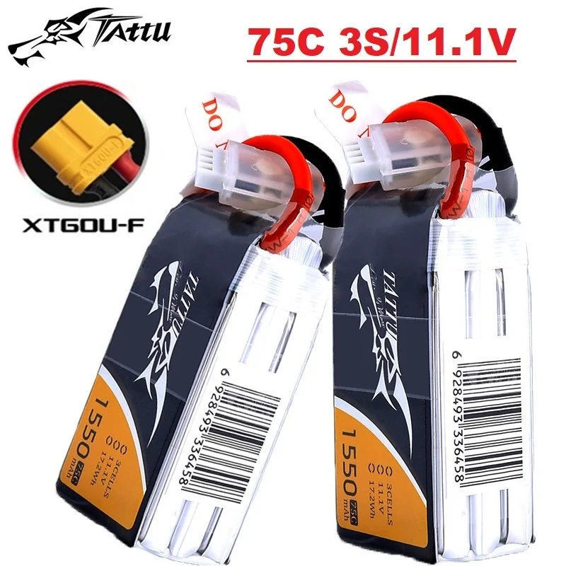 TATTU-batería LiPo 3S 11,1 V 1550mAh 75C para helicóptero RC Quadcopter FPV Racing Drone Parts con XT60 11,1 V, batería recargable
