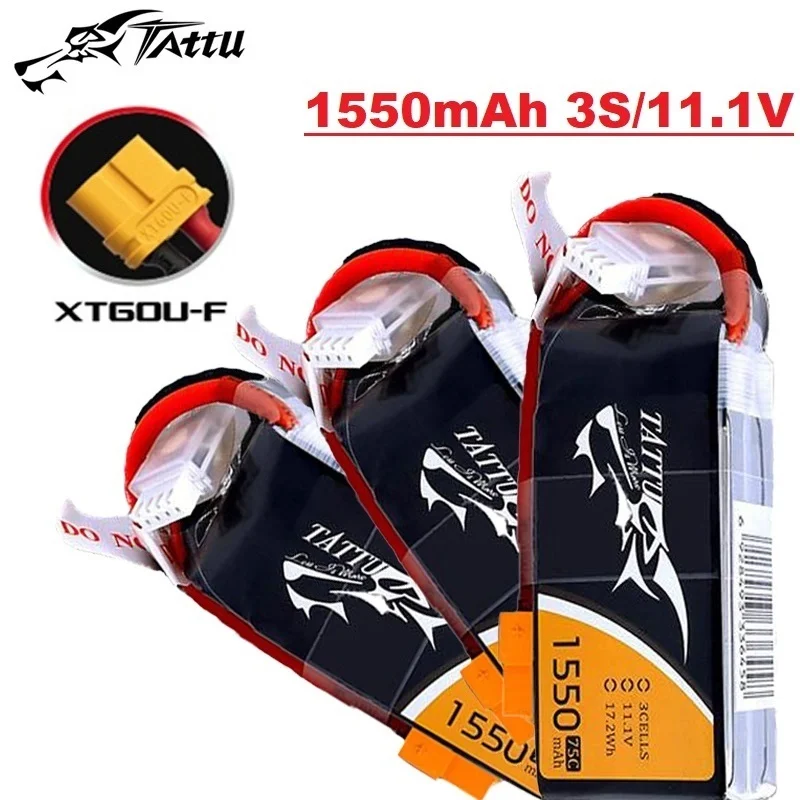 TATTU-batería LiPo 3S de 11,1 V, 1550mAh, 75C, para helicóptero RC, Quadcopter, FPV, piezas de Dron de carreras con enchufe XT60, batería de 11,1 V para Drones
