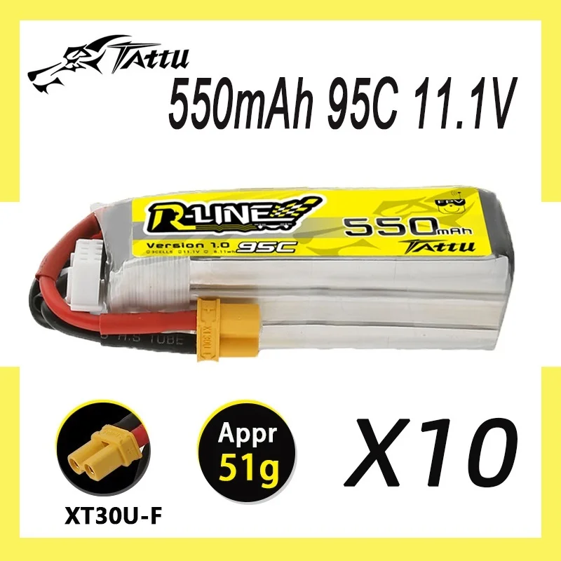 TATTU-batería Lipo para Dron de carreras, R-LINE 1,0, 550mAh, 95C, 11,1 V, para helicóptero RC, Quadcopter, FPV, 3S