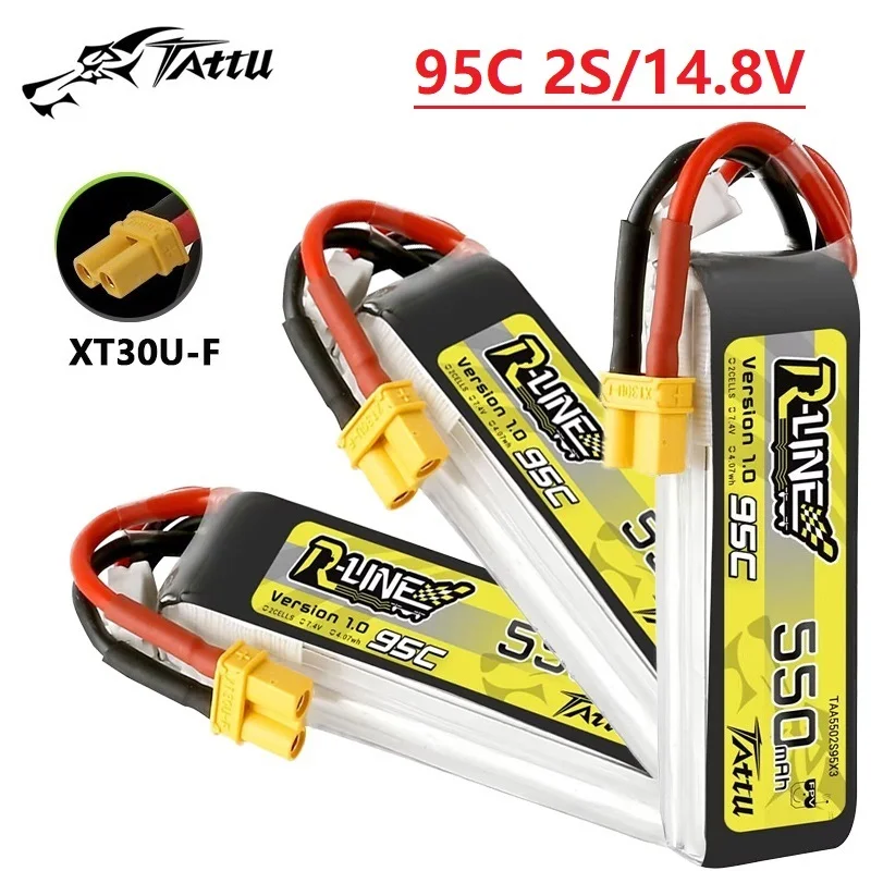 TATTU-batería LiPo para Dron de carreras, R-LINE 1,0, 550mAh, 95C, 7,4 V, para helicóptero RC, Quadcopter, FPV, 2S