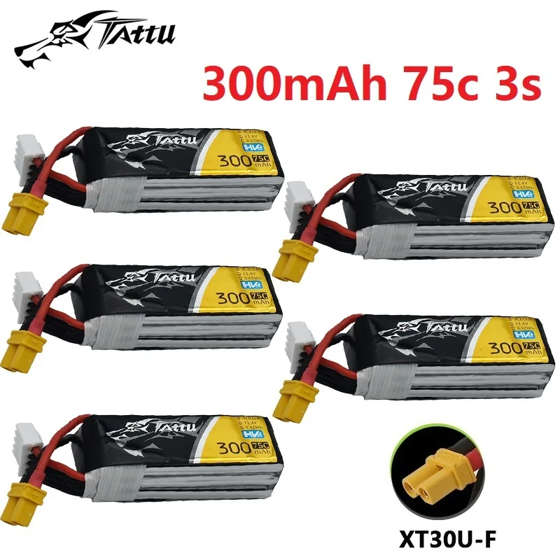 TATTU-batería Lipo con enchufe XT30 para helicóptero, cuadricóptero de carreras, FPV, 300mAh, 3S, 11,4 V, 75C, 11,4 V