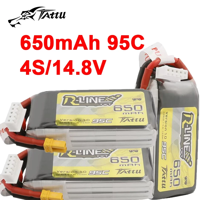 TATTU-batería LiPo para helicóptero de control remoto, piezas 1,0 14,8 V 650mAh 95C para cuadricóptero de control remoto, piezas de Dron de carreras, batería recargable de R-LINE, 3 4S