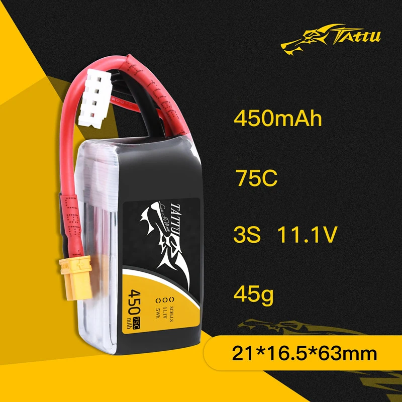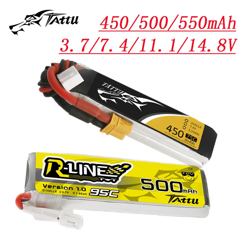 TATTU-batería Lipo para helicóptero de control remoto, piezas de Dron de carreras, 450/500/550/3,7 mAh, 75C/95C, 7,4 V/11,1 V/14,8 V, 2 piezas