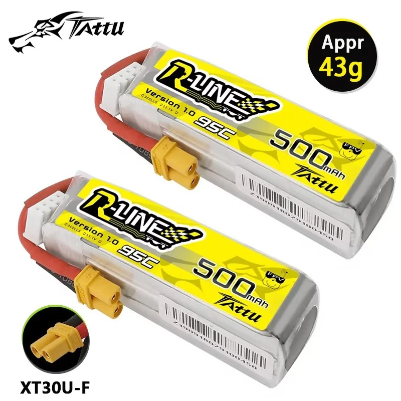 TATTU-batería Lipo para helicóptero de control remoto, R-LINE 1,0, 500mAh, 95C, 11,1 V, piezas de Dron de carreras, FPV, 11,1 V, con enchufe XT30
