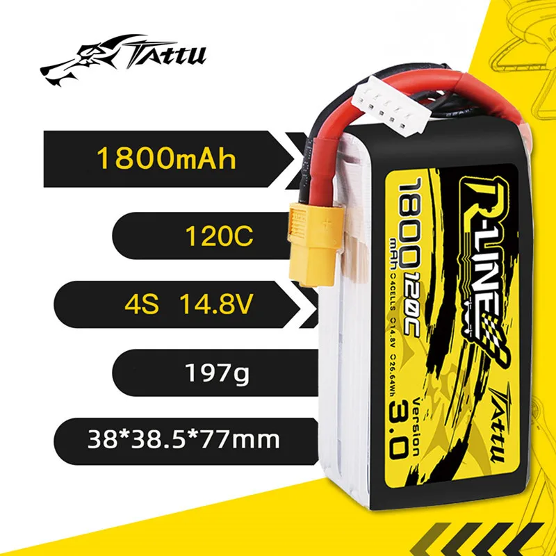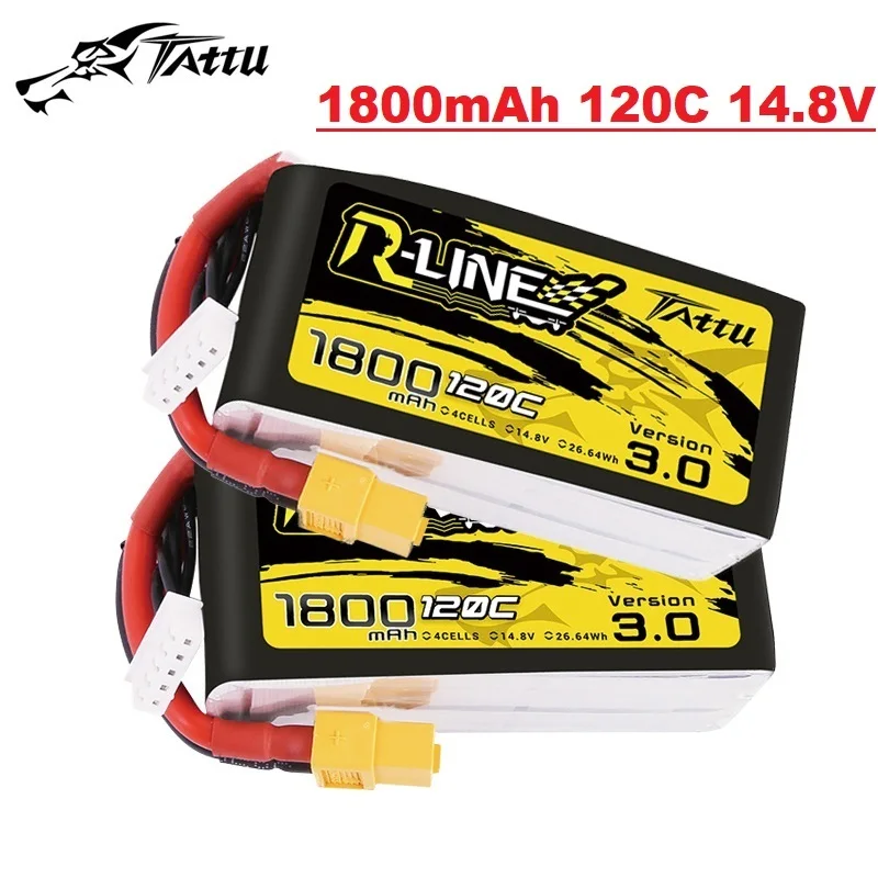 TATTU-batería LiPo recargable para Dron de carreras, R-LINE 120C 3,0, 1800mAh, 14,8 V, para helicóptero RC, cuadricóptero, FPV, 4S