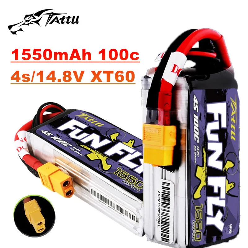 TATTU FUNFLY-batería LiPo de 14,8 V, 1550mAh, 100C, para helicóptero RC, Quadcopter, FPV, piezas de Dron de carreras con enchufe XT60, 4S