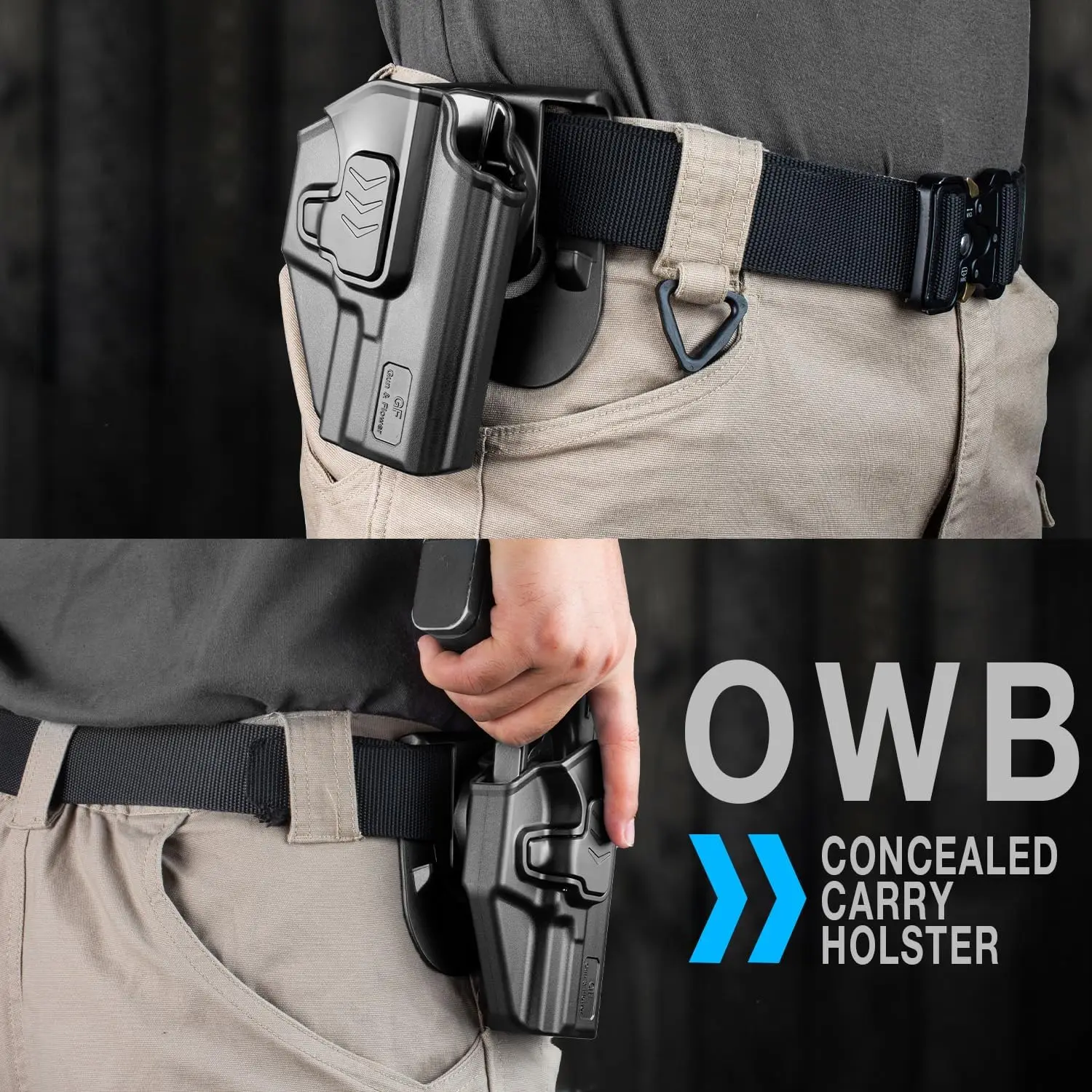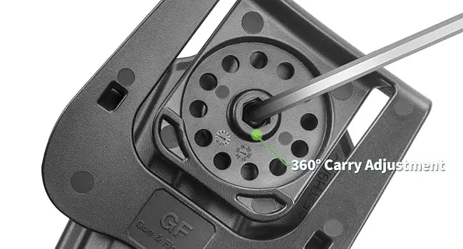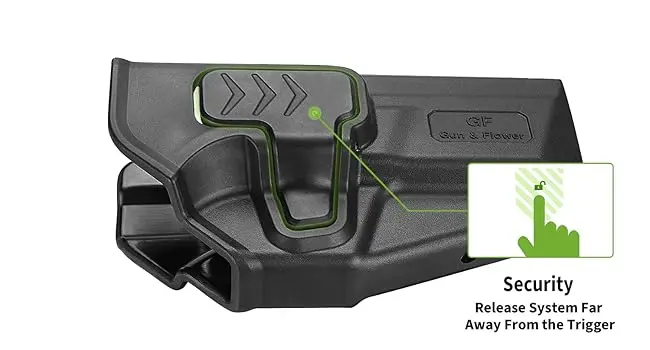 Retroalimentación de "clic" de bloqueo audible: escuche y sienta un "clic" distinto mientras su arma de fuego está bloqueada de forma segura.Se mantiene seguro hasta que lo sueltes intencionalmente.