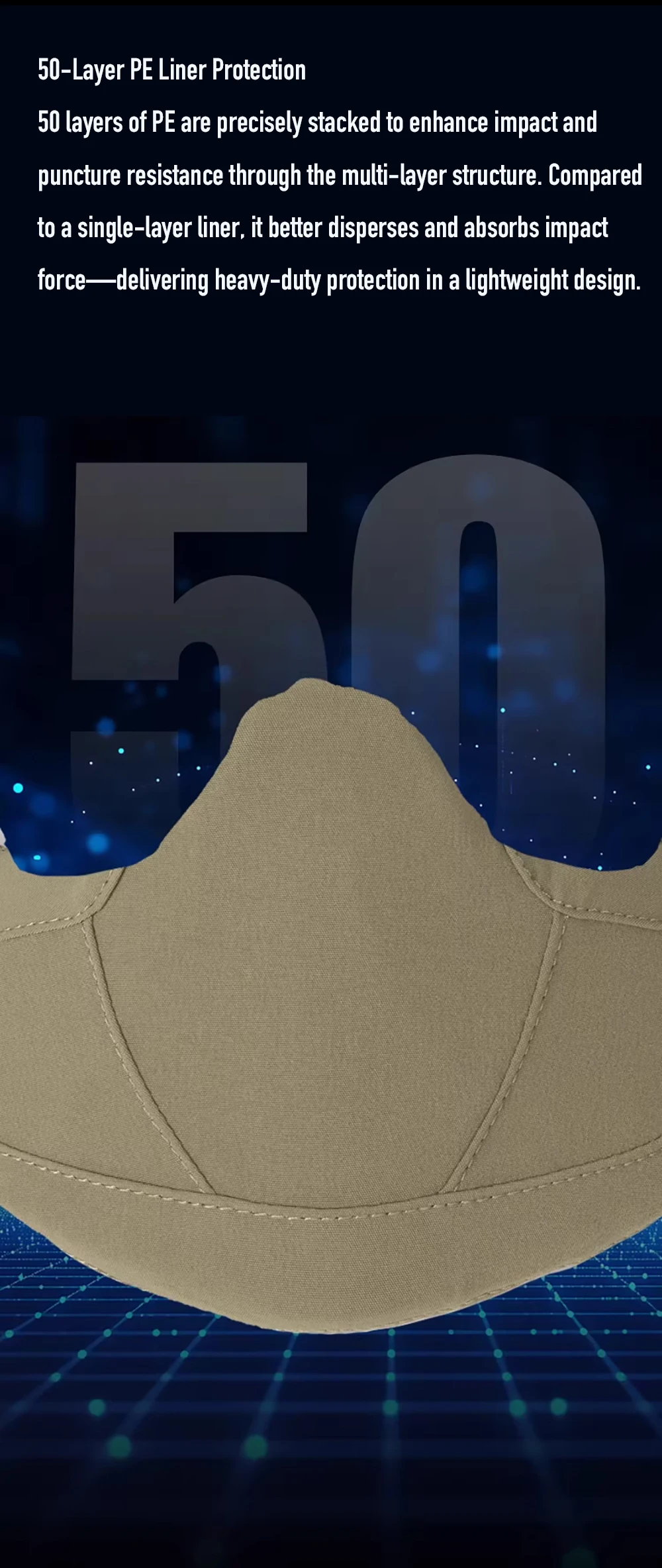 Materiales: forro de PE, nailon plástico, tejido de nailon elástico.