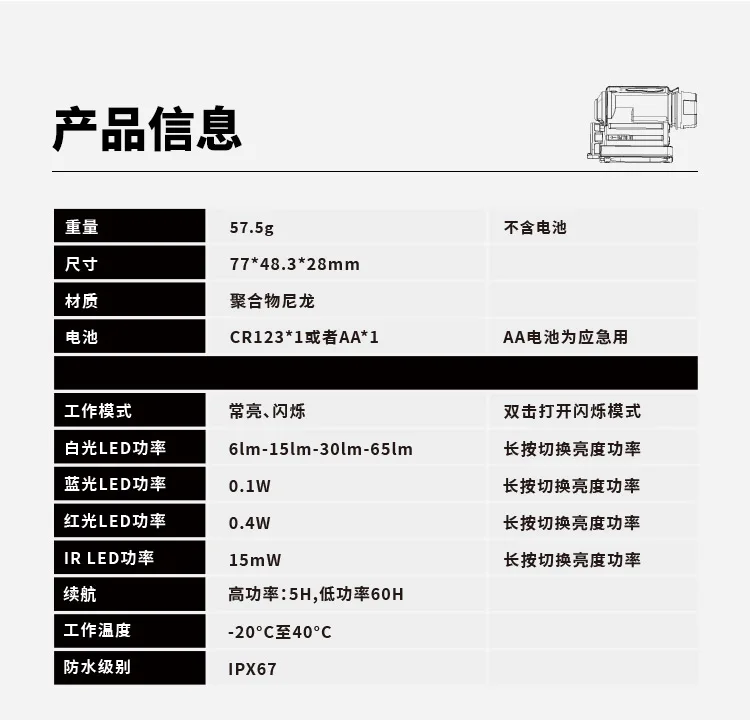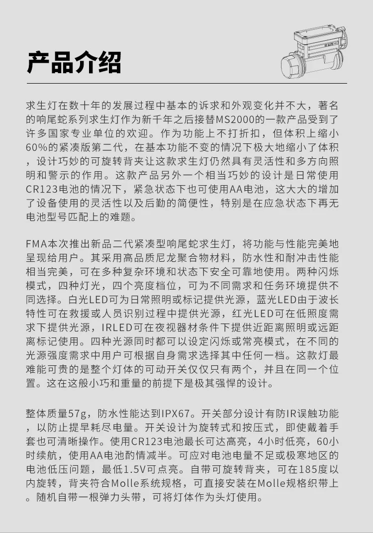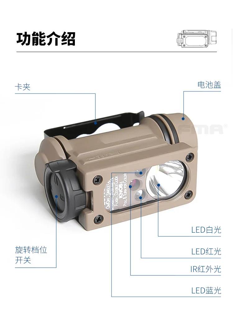 TB1474 FMA lámpara de supervivencia de segunda generación con tira de luz frontal IR señal intermitente de tres colores de supervivencia con poca luz