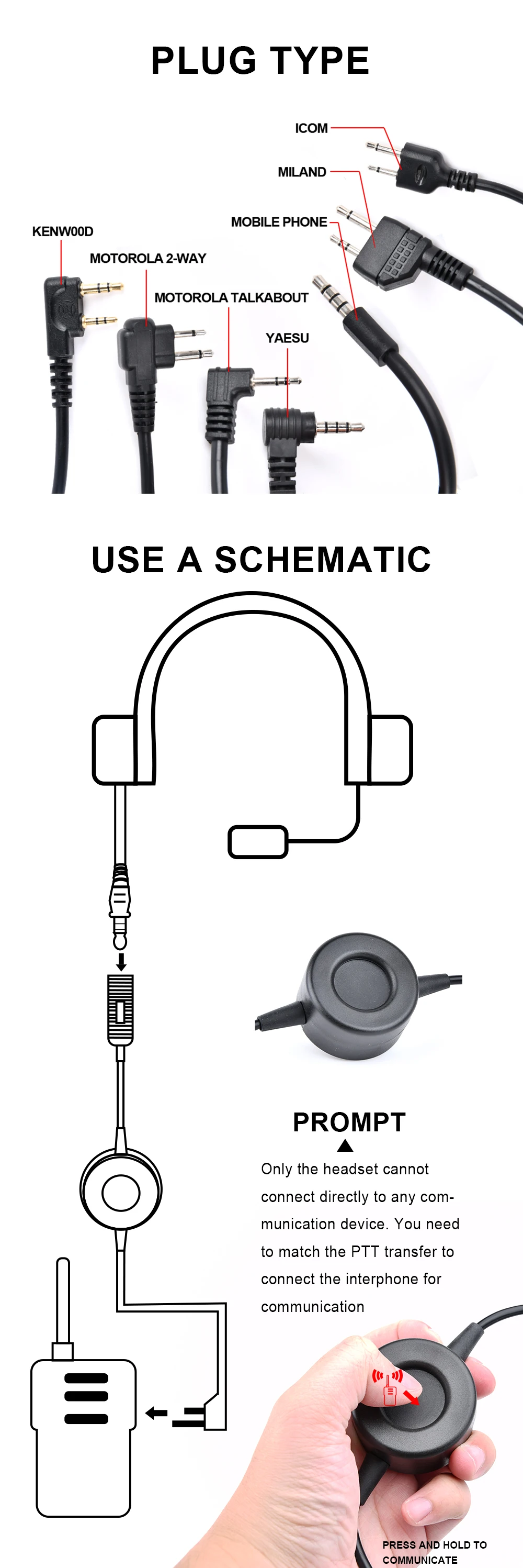 TCI táctico PTT botón pulsar para hablar walkie-talkie Versión Civil auricular estándar para Kenwood ICOM Motorola MILAND Yaesu enchufe