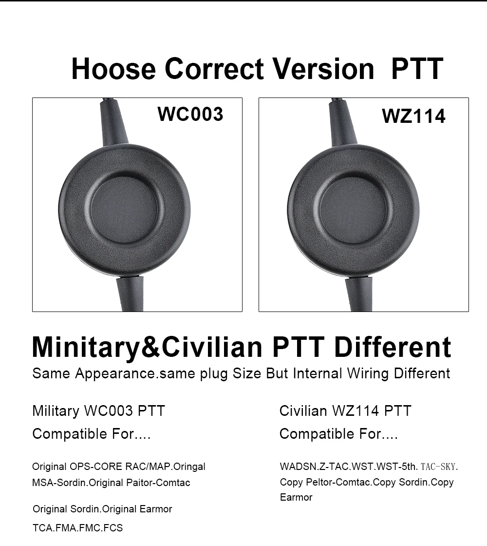 TCI táctico PTT, walkie-talkie, botón pulsar para hablar, auriculares de versión estándar civil para BaoFeng Walkie talkie Kenwood ICOM enchufe