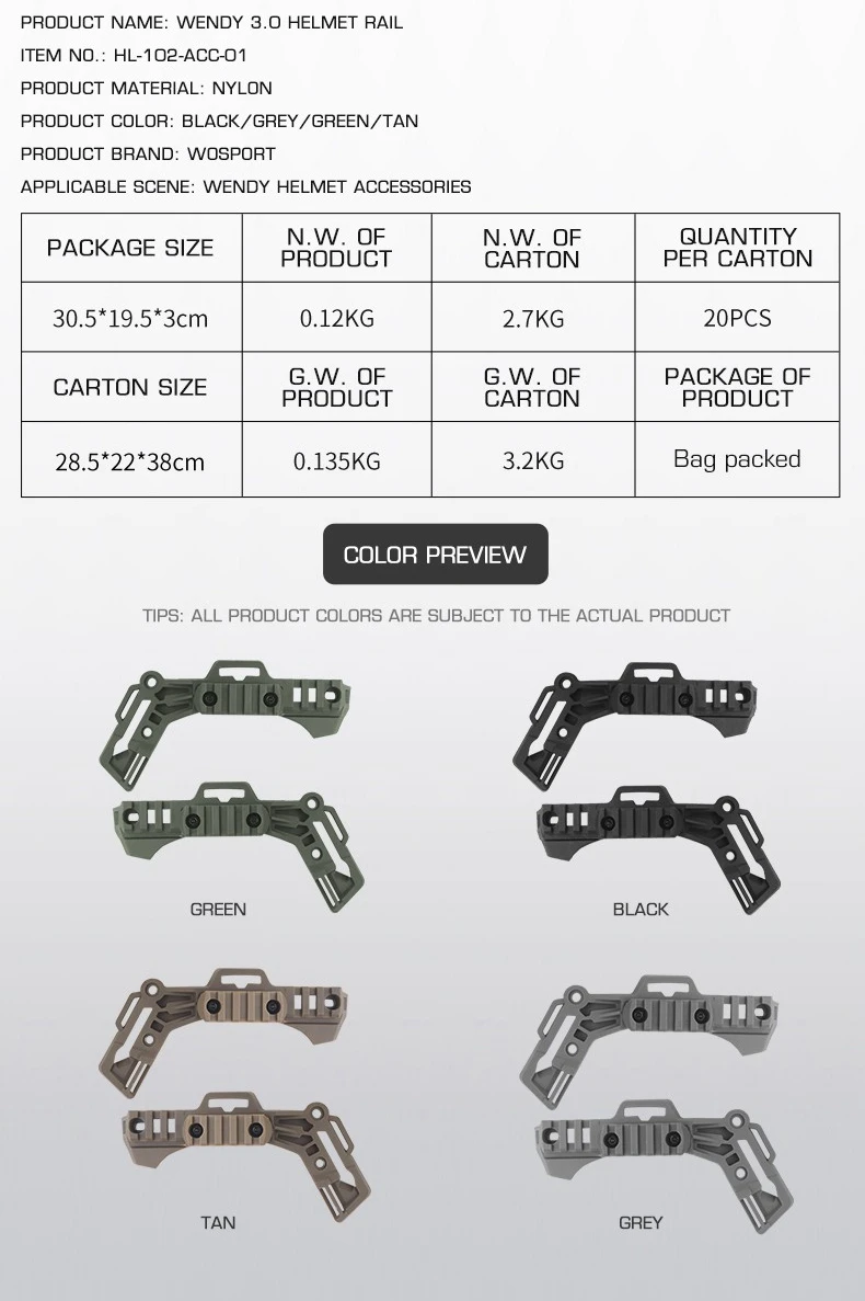 Team Wendy-riel de montaje para cascos, riel de guía de repuesto para Bulletproof 2,0 y 3,0, accesorios para cascos