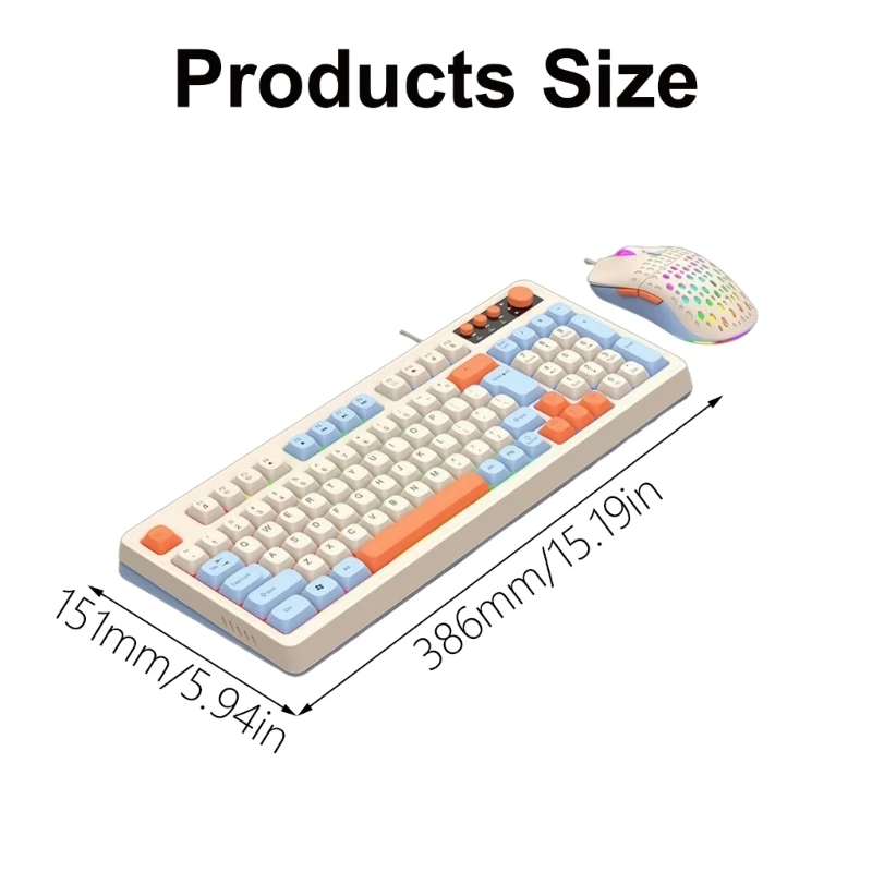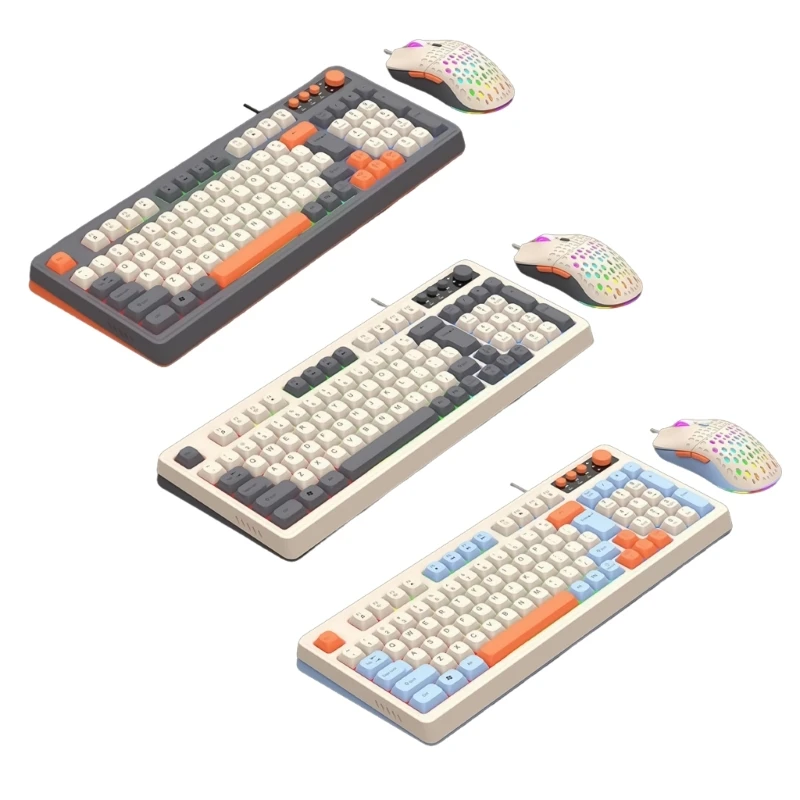 Características:Teclado para juegos con cable de tres combinaciones de colores y retroiluminación ARGB, creando una experiencia colorida con modos de iluminación.