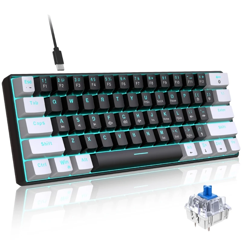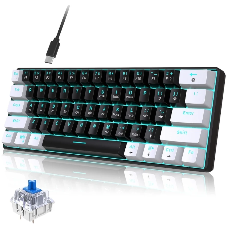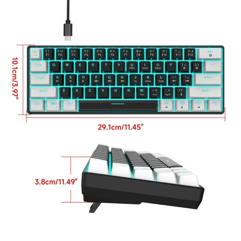 Diseño compacto: el tamaño pequeño del Teclado mecánico de 61 teclas lo hace más cómodo de usar y ocupa un espacio mínimo en el escritorio.