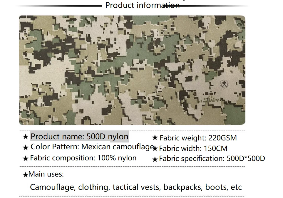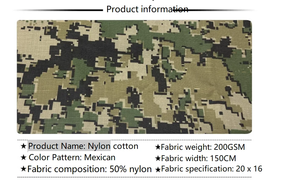 Tela a cuadros de algodón de nailon 500D de camuflaje mexicano/NC5050/tela de malla gruesa resistente al desgaste, equipo táctico DIY