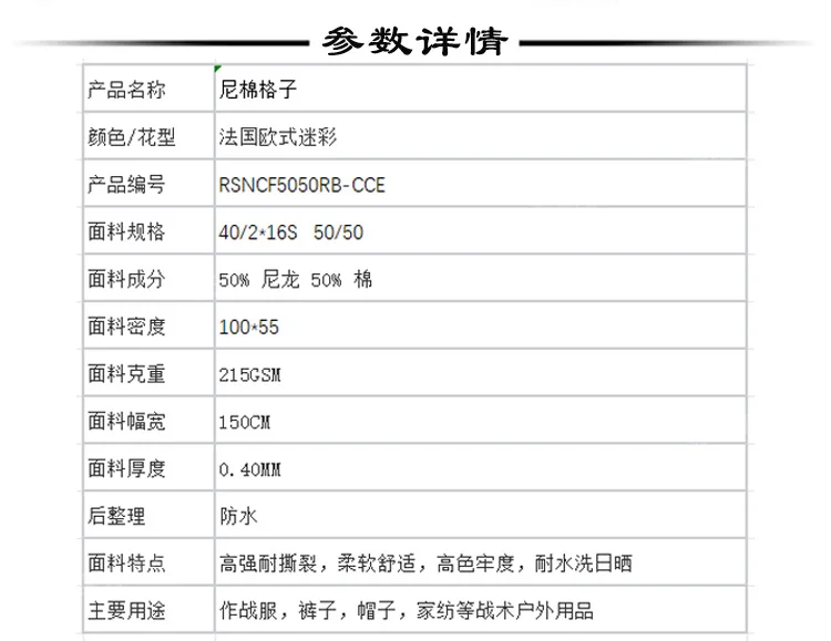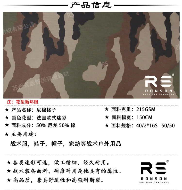 Tela a cuadros de algodón y nailon de camuflaje de estilo europeo francés