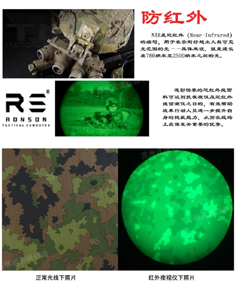 Características: elasticidad de cuatro lados, tratamiento anti infrarrojos.