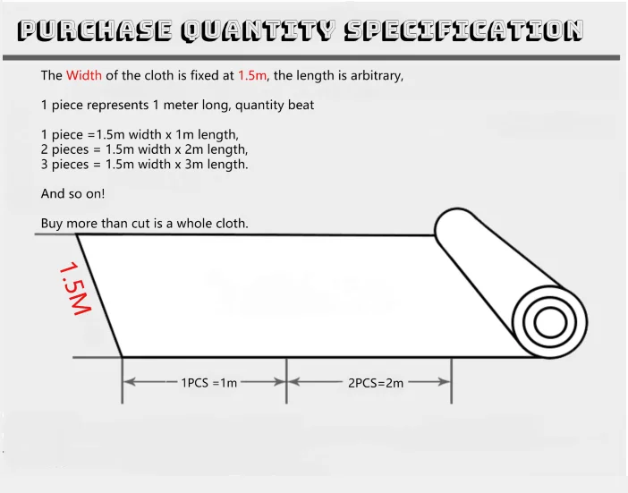 El ancho se fija en 1,5 metros, comprar una unidad tiene una longitud de 1 metro, comprar dos unidades tiene una longitud de 2 metros y comprar tres unidades tiene una longitud de 3 metros. Y así sucesivamente