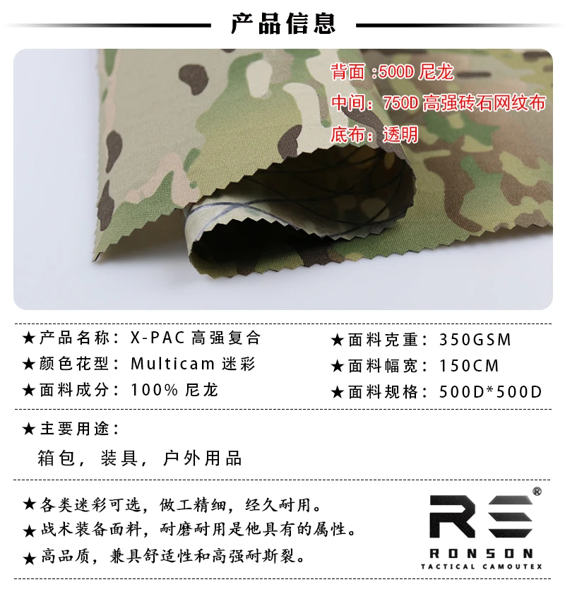Tela MCAP 500D Xpac, tela de nailon impermeable compuesta de alta resistencia para exteriores, camuflaje