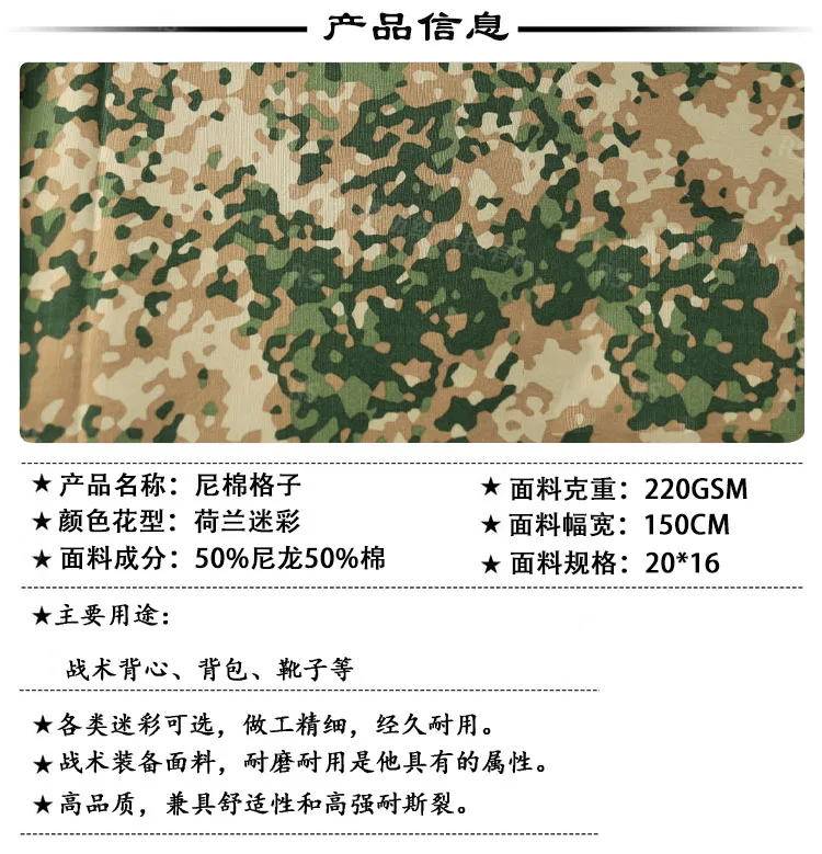 Composición de la tela: 50% nailon 50% Algodón