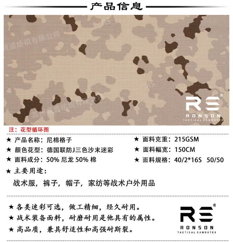 Usos principales: trajes de combate, pantalones, sombreros, textiles para el hogar y otros productos tácticos para exteriores.