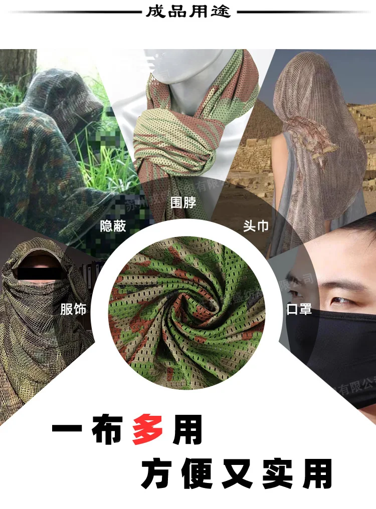 Usos principales: toallas de red, bufandas, cuellos, complementos de vestir y otros productos para exteriores.