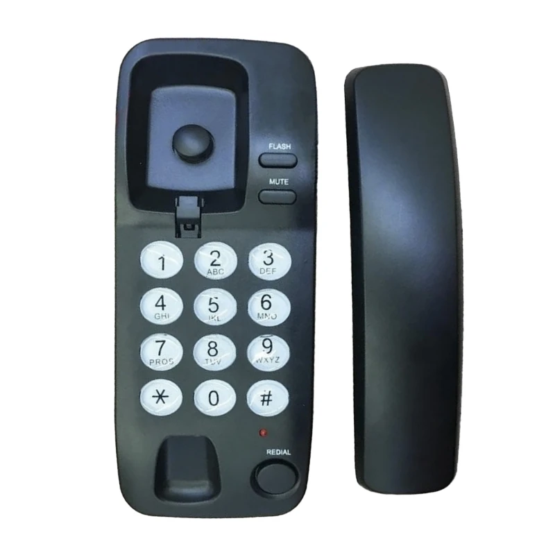 El teléfono fijo con cable es compacto y se puede colgar en la pared o colocar sobre el escritorio, lo que forma unos hermosos fondos.