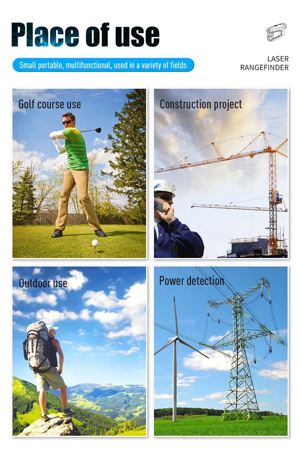 Múltiples modos: incluye medición de distancia, modo de golf, ángulo/distancia/altura entre dos puntos y más para satisfacer sus diversas necesidades de medición.
