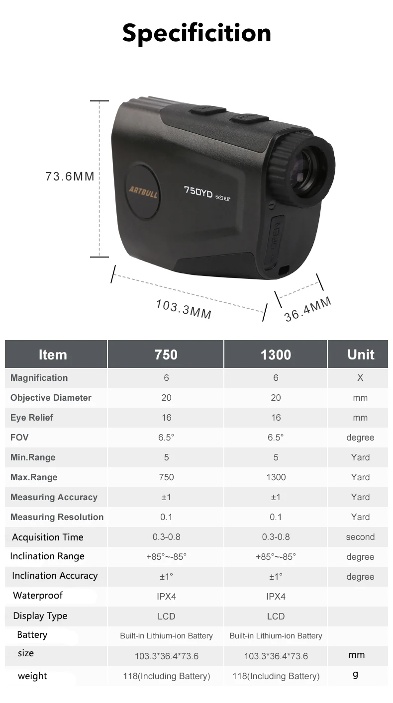 Rango de medición: 5-750 yardas